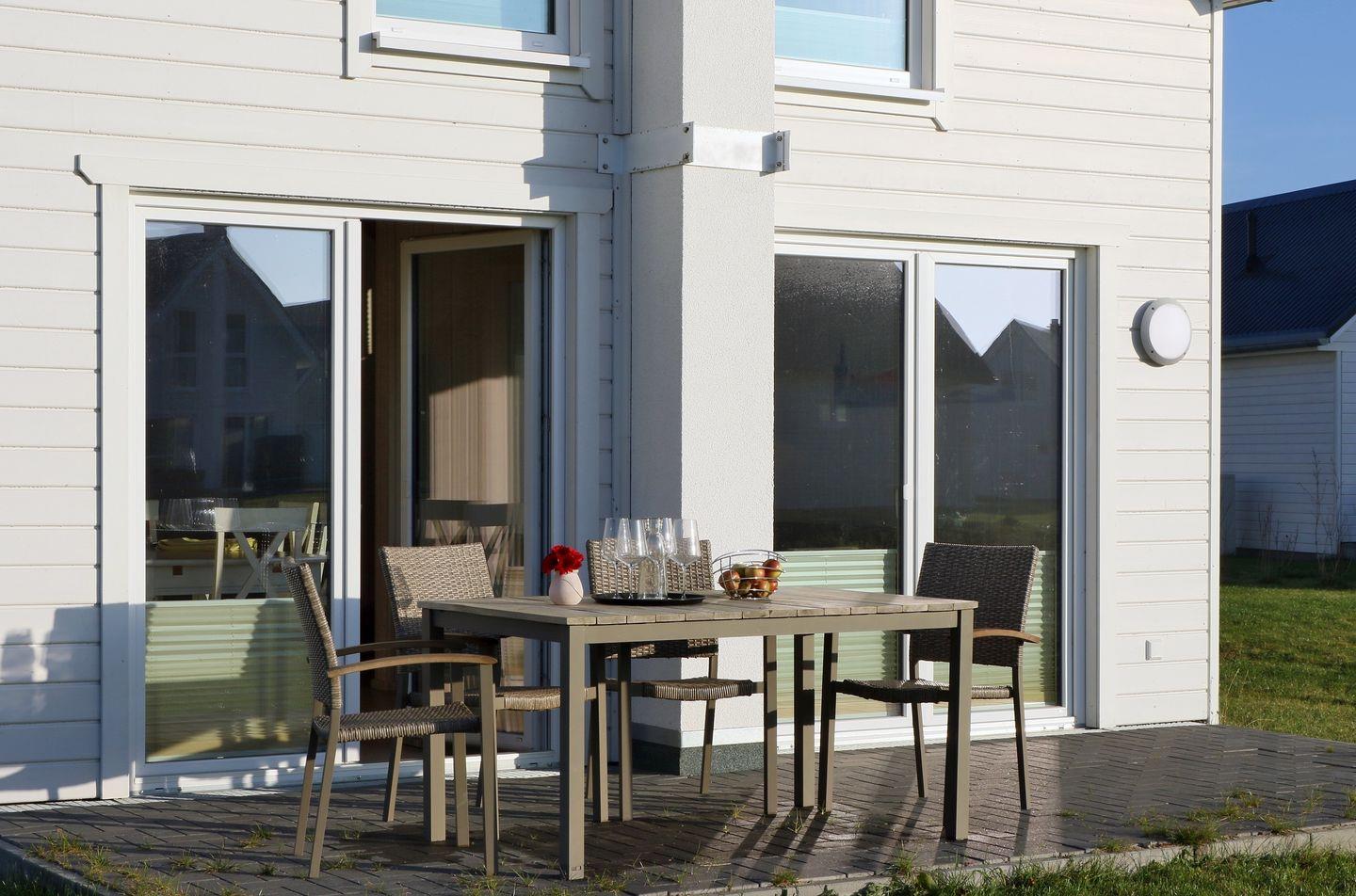 Willkommen im Haus „Sanddüne“ im OstseeResort Olpenitz. Mache Urlaub an der Ostsee! Das Haus besticht durch Seine Lage im Grünen und Seine unmittelbare Nähe zur Ostsee. Es bietet auf 80 m² einen offenen Wohn- und Essbereich mit Kaminofen, eine Küche, zwei Schlafzimmer, zwei Badezimmer und eine Terrasse.