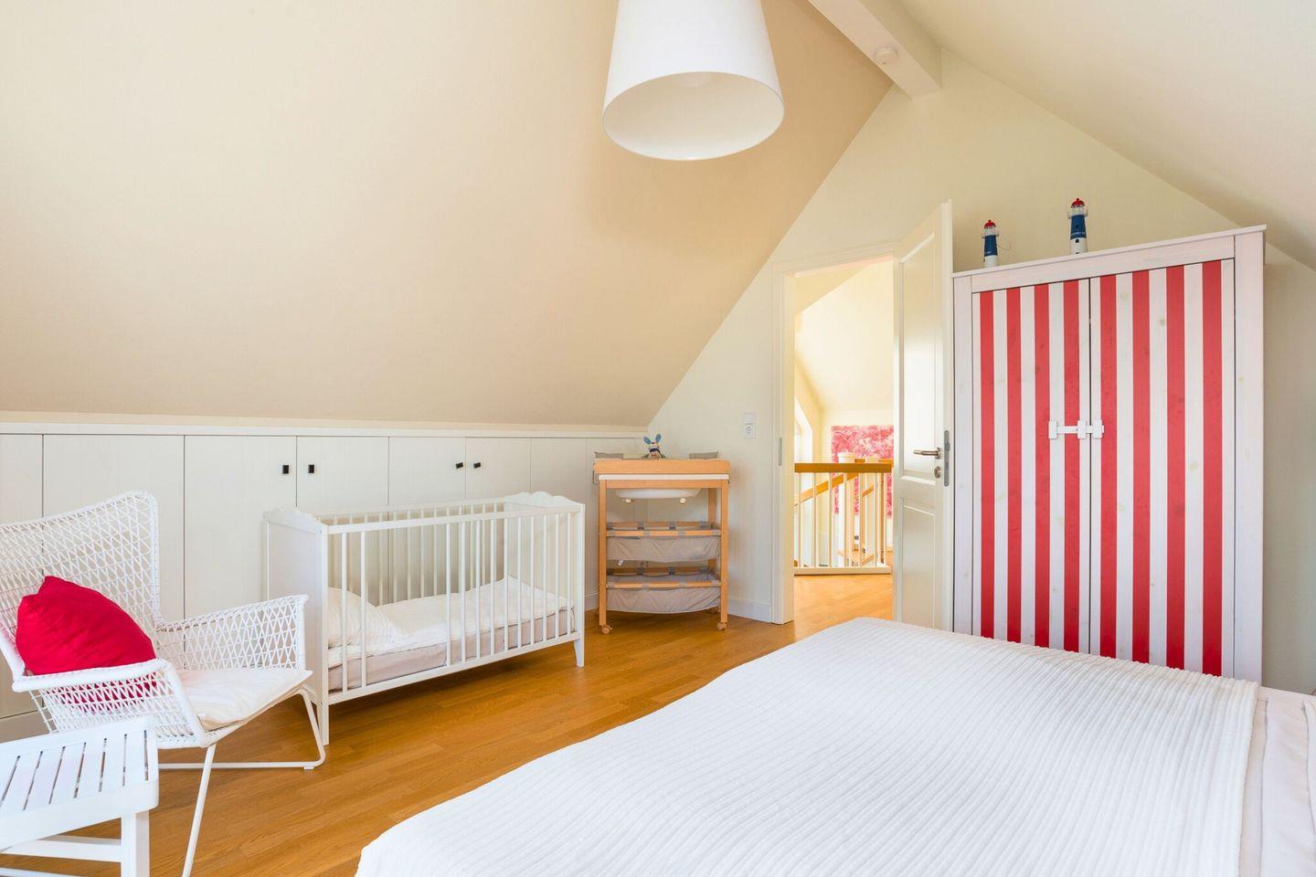 Das Ferienhaus ist kinderfreundlich ausgestattet, mit Einrichtungen wie einem Kinderreisebett, Hochstuhl, Kindergeschirr und -besteck. Auf Anfrage stellen wir Ihnen gerne ein Treppengitter zur Verfügung.
