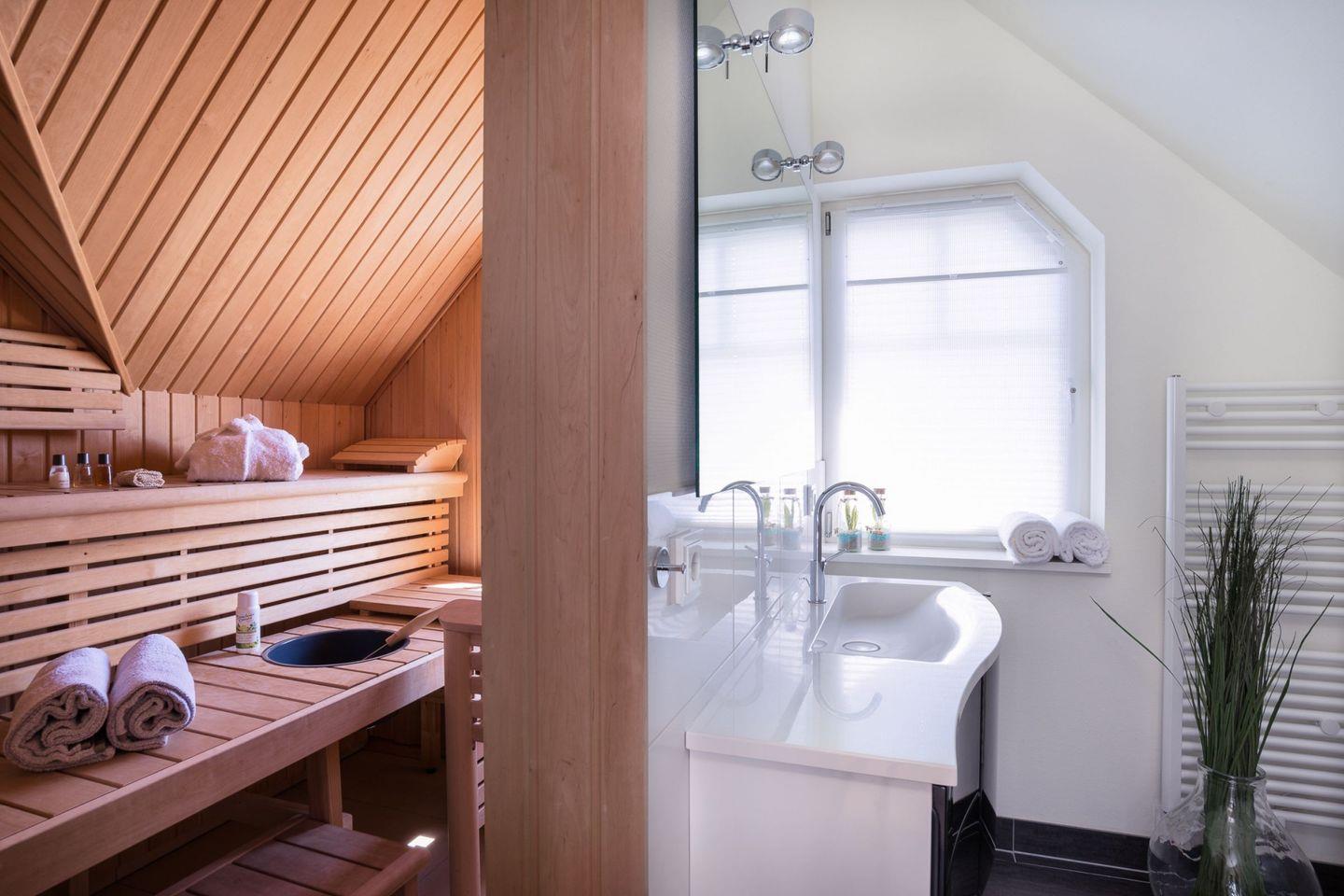 Für Unterhaltung an regnerischen Tagen sorgt ein umfangreiches Spielsortiment, die die ganze Familie erfreuen werden. Die finnische Sauna, mit Blick auf die Ostsee, im Badezimmer des Obergeschosses sorgt für Entspannung zu jeder Jahreszeit.