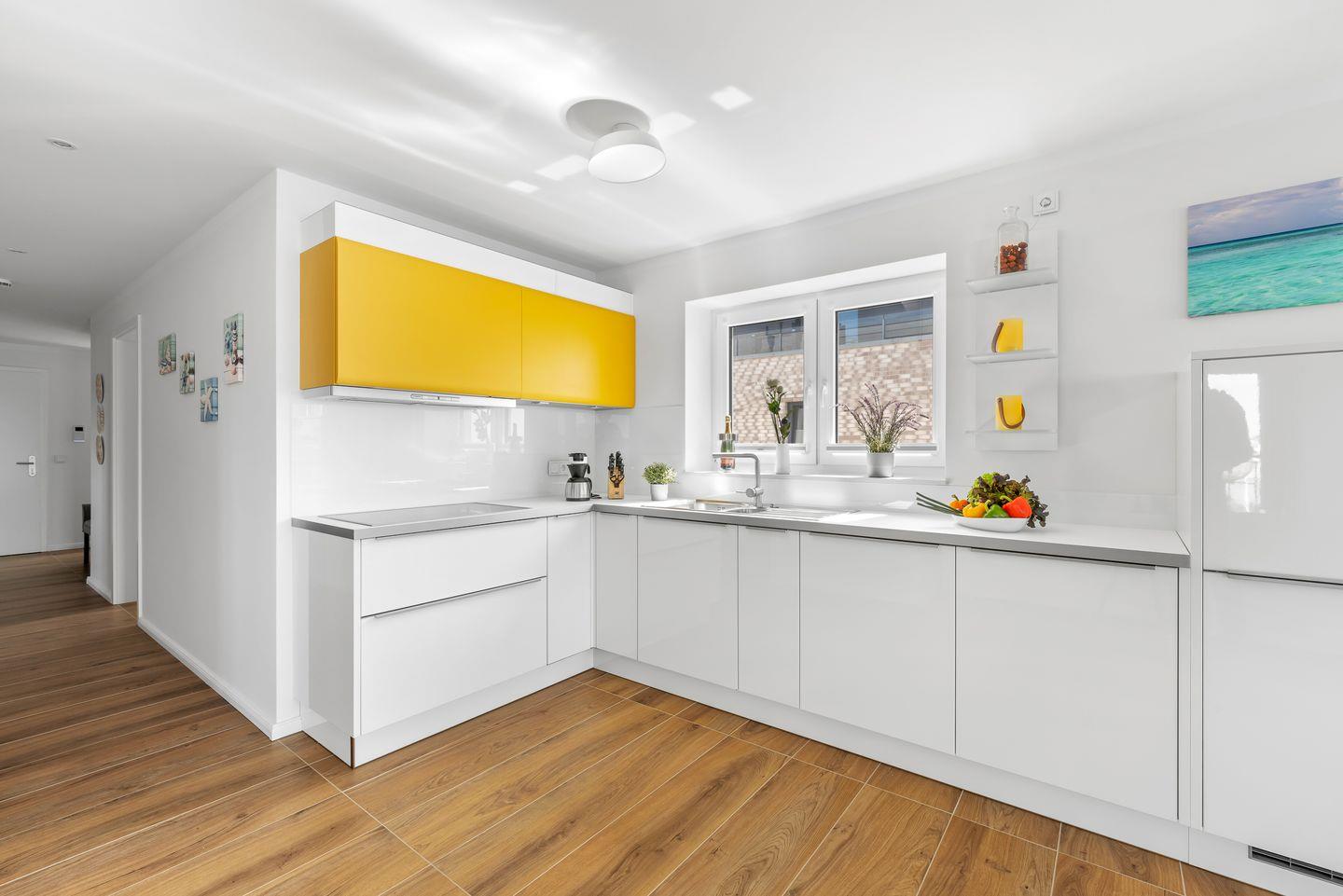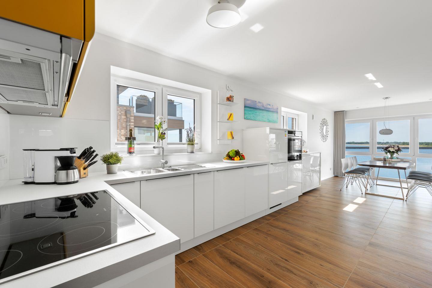 Die integrierte hochwertige Küche garantiert auch beim Kochen einen Blick auf das Wasser. Diese liebevoll ausgestattete Küche lässt das Herz eines jeden Hobbykochs höherschlagen.