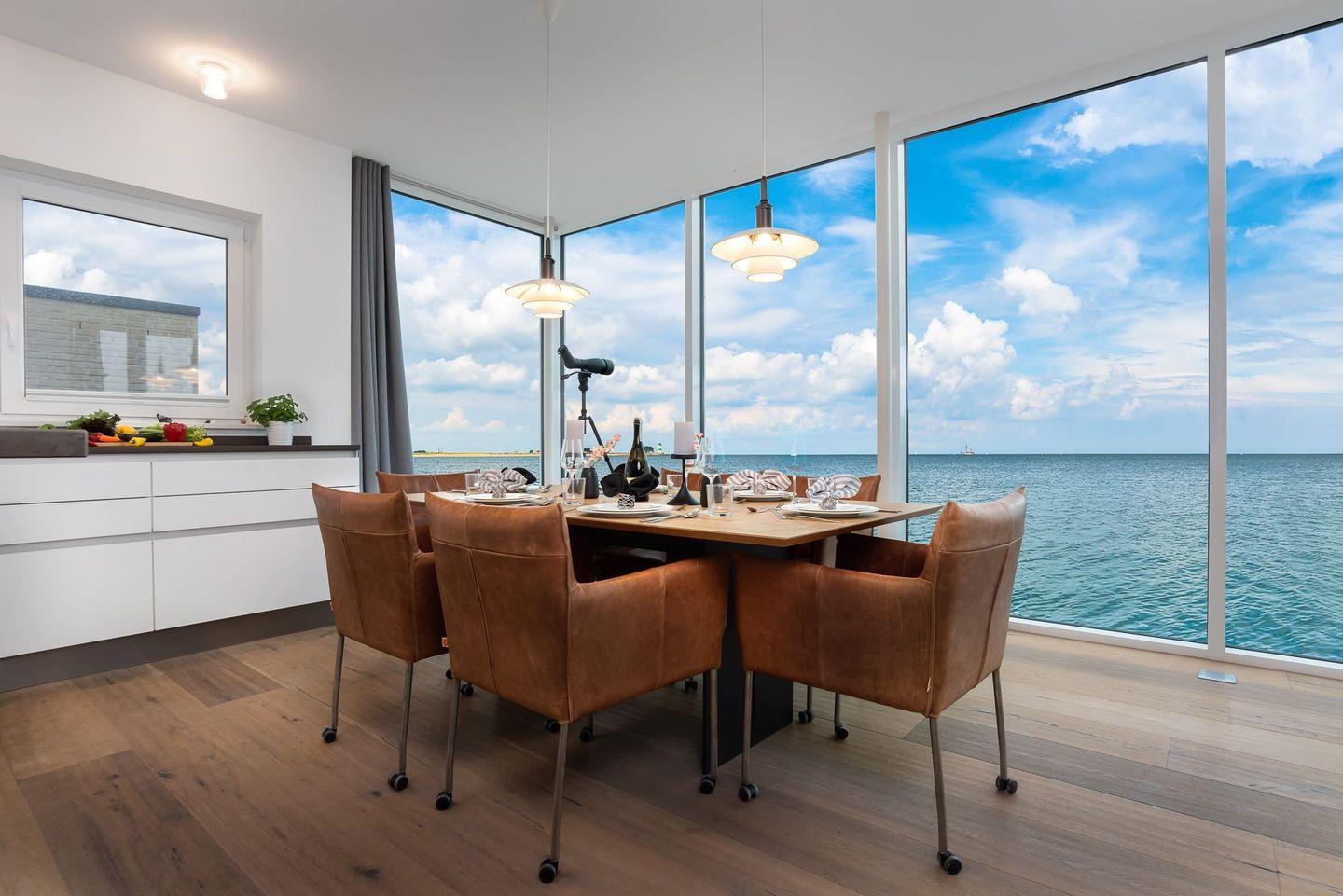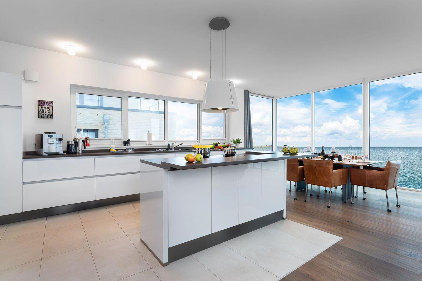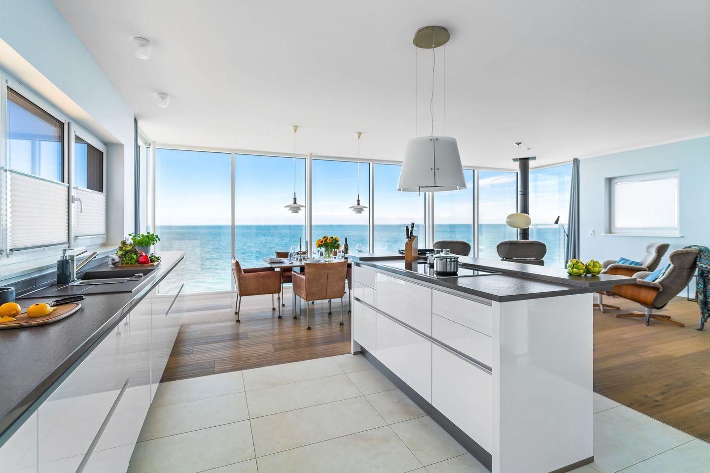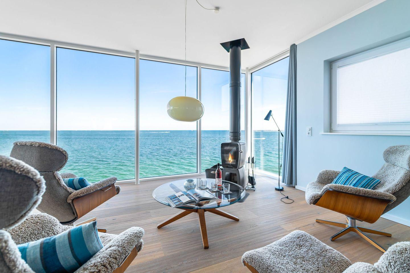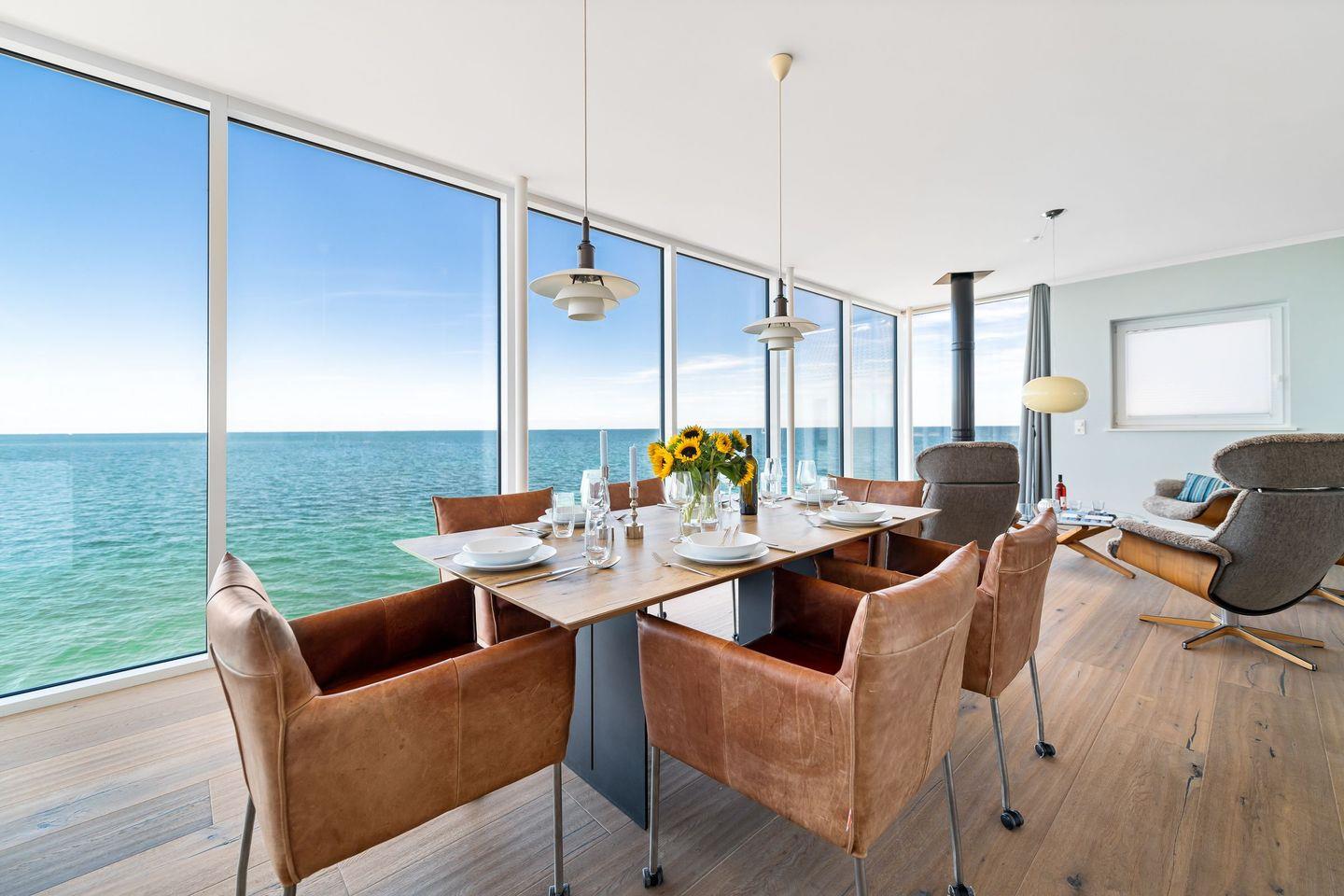 Dem Himmel und Meer ganz nah – so fühlt es sich an, in dieser exklusiven Villa Urlaub zu machen. Dieses Feriendomizil wurde direkt auf der Ostsee auf eine Mole gebaut und besticht durch seine besondere Lage und hochwertige Einrichtung. Fenster, die vom Boden bis zur Decke reichen, klare Formen und Linien in der luxuriösen Ausstattung und jede Menge Platz, um im Urlaub zu entschleunigen und den Blick über die unendliche Weite des Meeres schweifen zu lassen. Erholung und Ruhe sind hier garantiert.