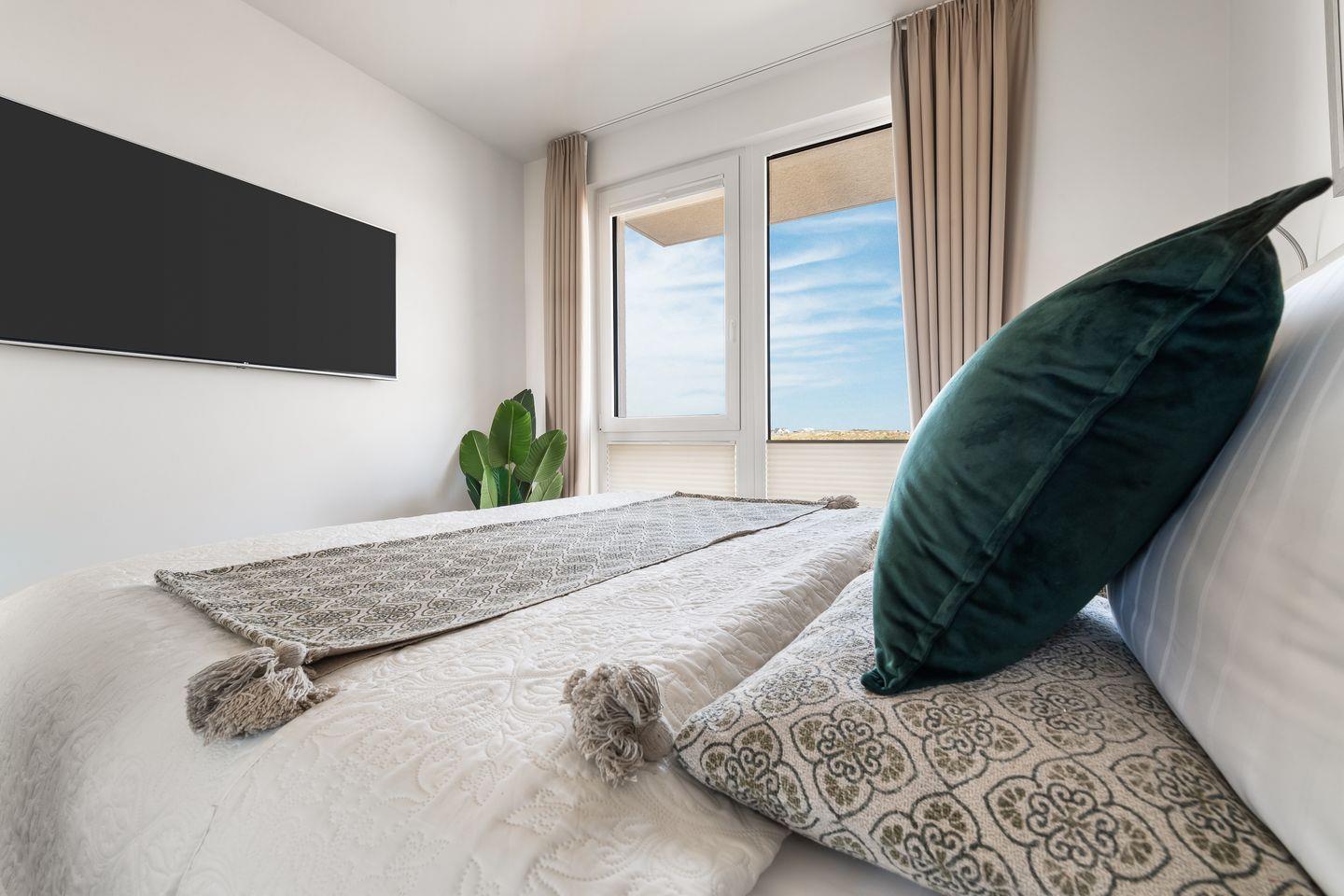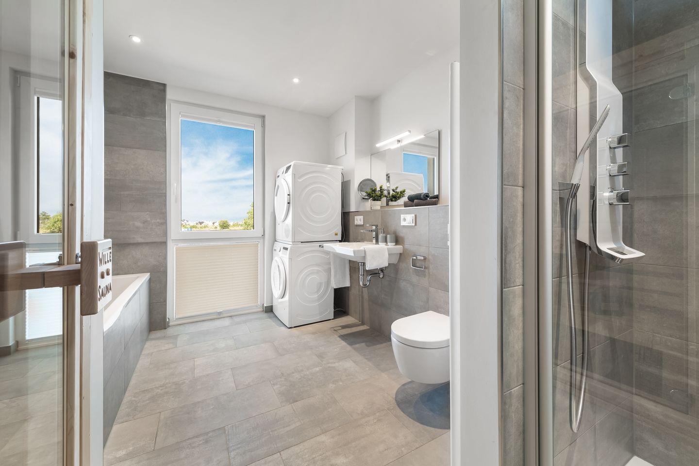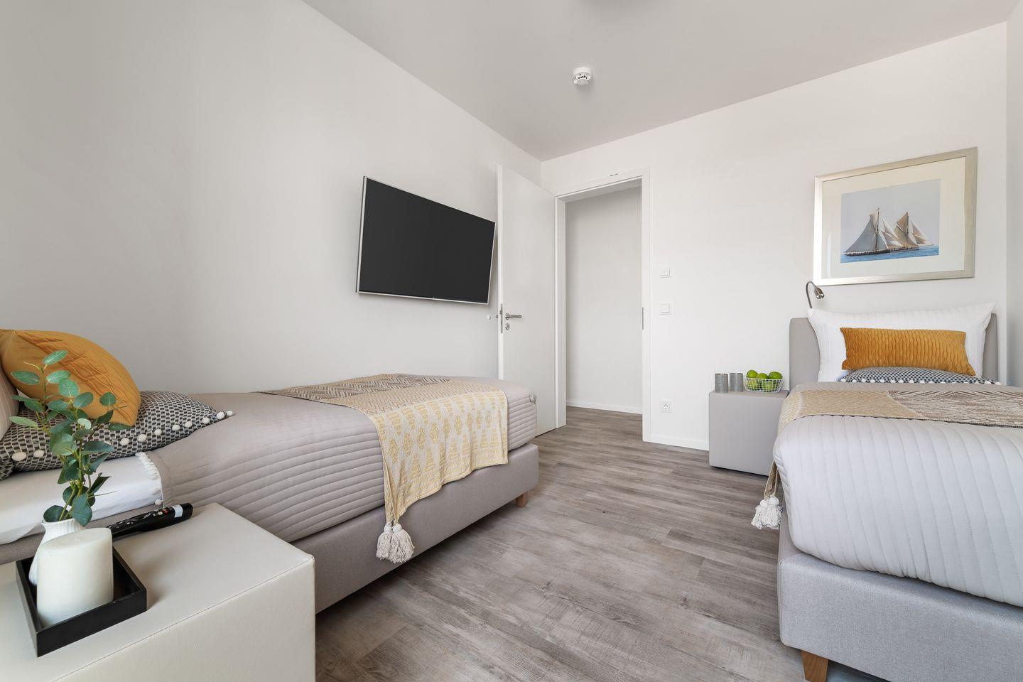 Das Apartment "BeachLoungeTwo" bietet zwei Schlafzimmer, ausgestattet mit hochwertigen Boxspringbetten für einen erholsamen Schlaf. Entspannen Sie sich in der finnischen Sauna oder genießen Sie ein Bad in der großzügigen Wanne.