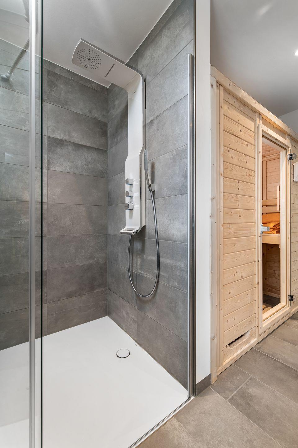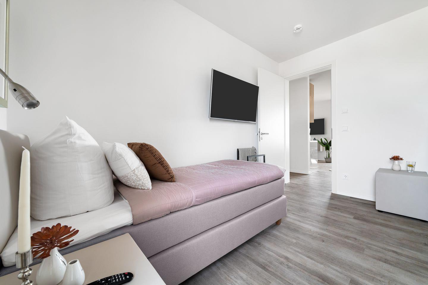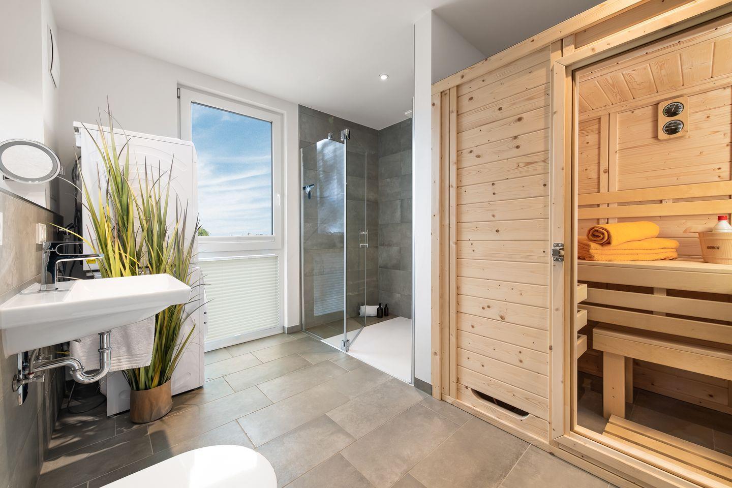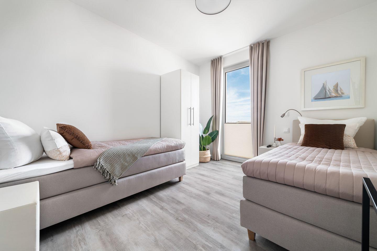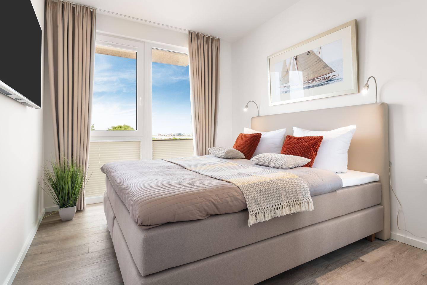 Das Apartment "BeachLoungeThree" bietet zwei Schlafzimmer, ausgestattet mit hochwertigen Boxspringbetten für einen erholsamen Schlaf. Entspannen Sie sich in der finnischen Sauna oder genießen Sie ein Bad in der großzügigen Wanne.