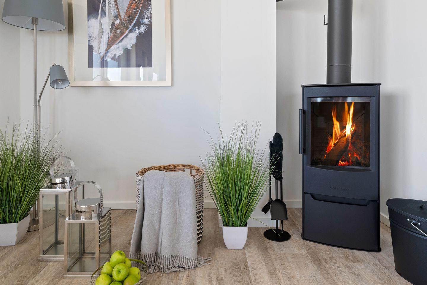 Der großzügige Wohn- und Essbereich ist der perfekte Ort für gesellige Stunden. Ausgestattet mit einer vollintegrierten Küche, können Sie hier leckere Mahlzeiten für Familie und Freunde zubereiten, während Sie den Blick auf die vorbeiziehenden Segelboote genießen. In der kühleren Jahreszeit sorgt der Kamin für gemütliche Atmosphäre.