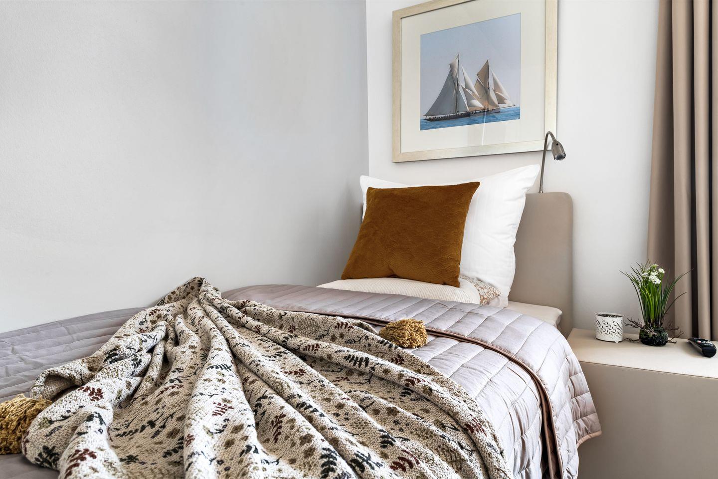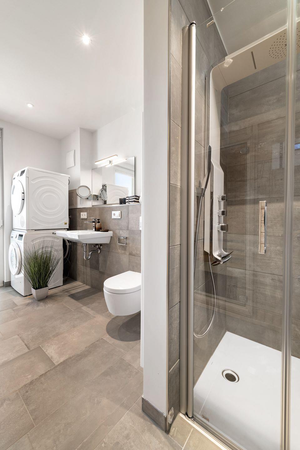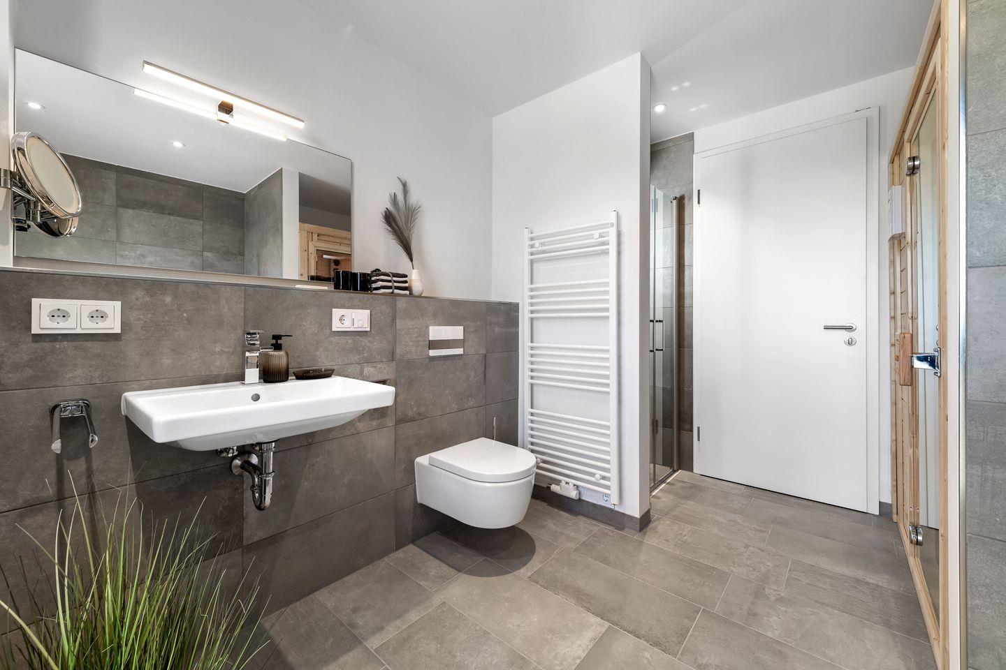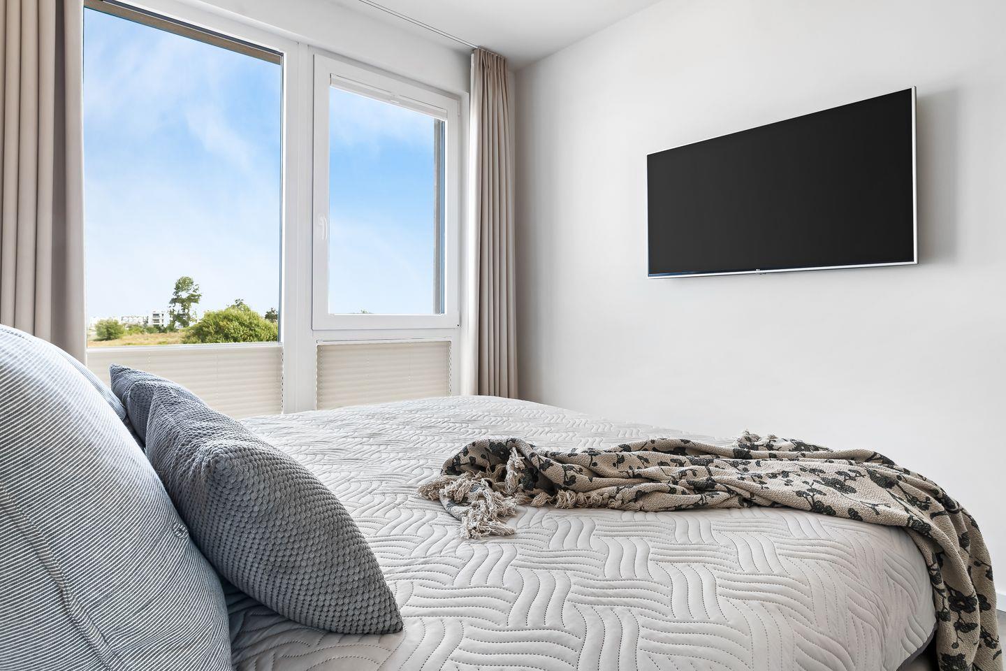 Das Apartment "BeachWaveTwo" bietet zwei Schlafzimmer, ausgestattet mit hochwertigen Boxspringbetten für einen erholsamen Schlaf. Entspannen Sie sich in der finnischen Sauna oder genießen Sie ein Bad in der großzügigen Wanne.