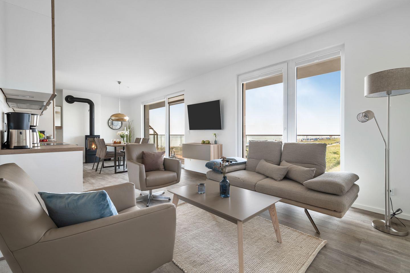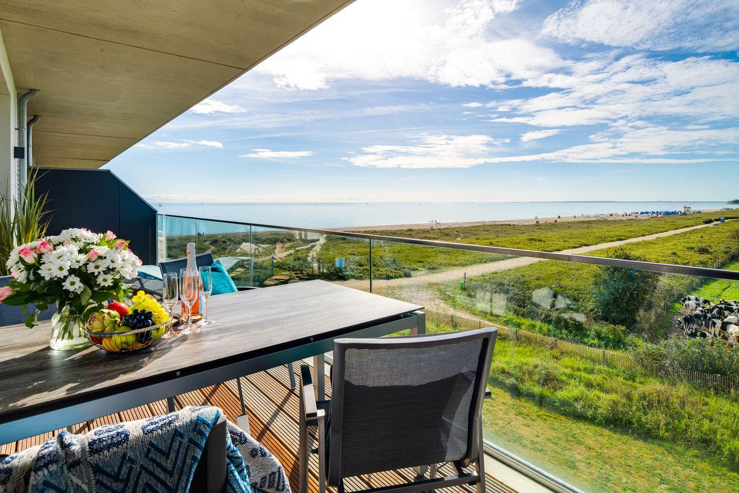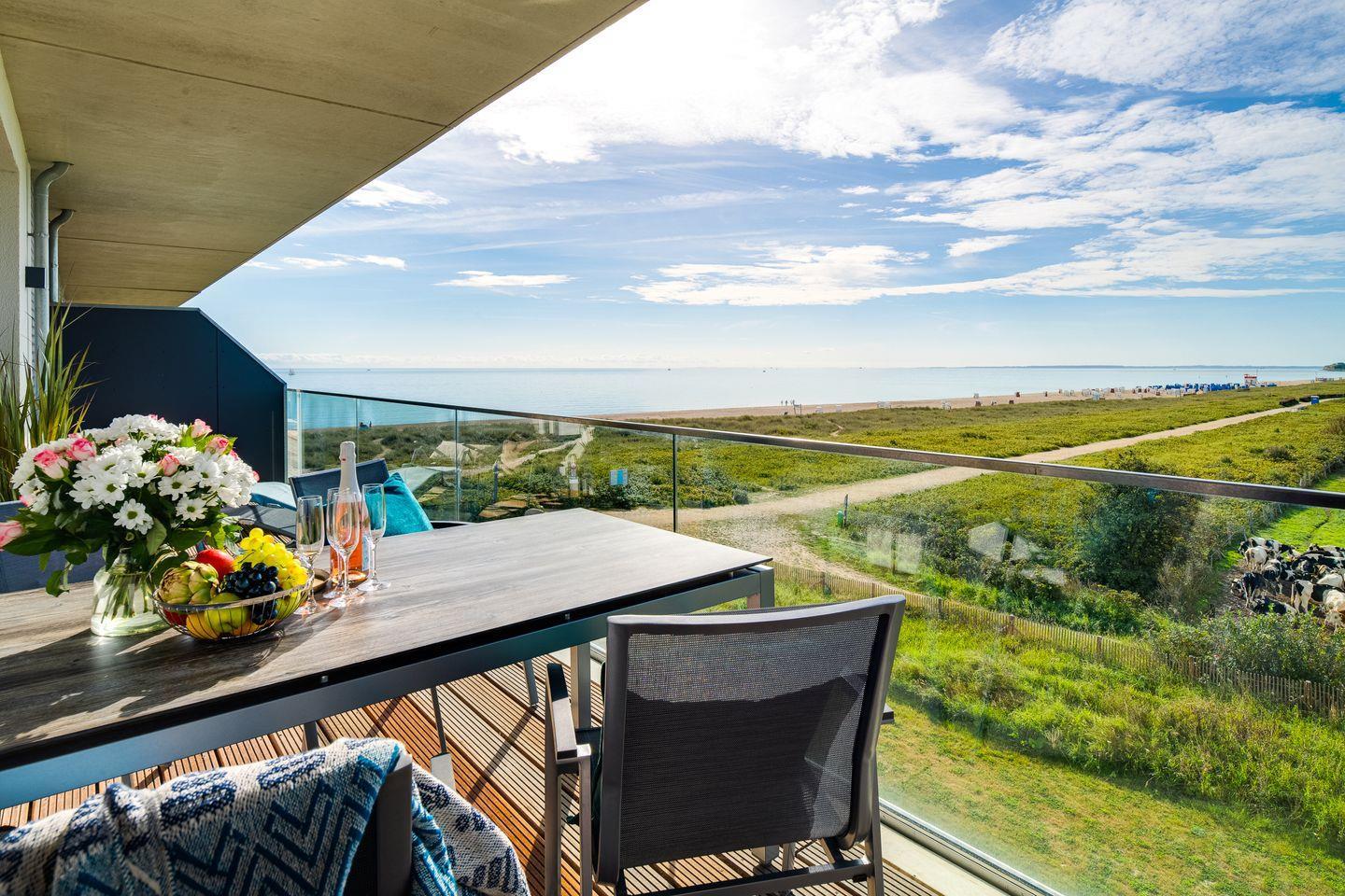 Moderne Ferienwohnung BeachWaveThree mit Sauna und Meerblick direkt am Weidefelder Strand.