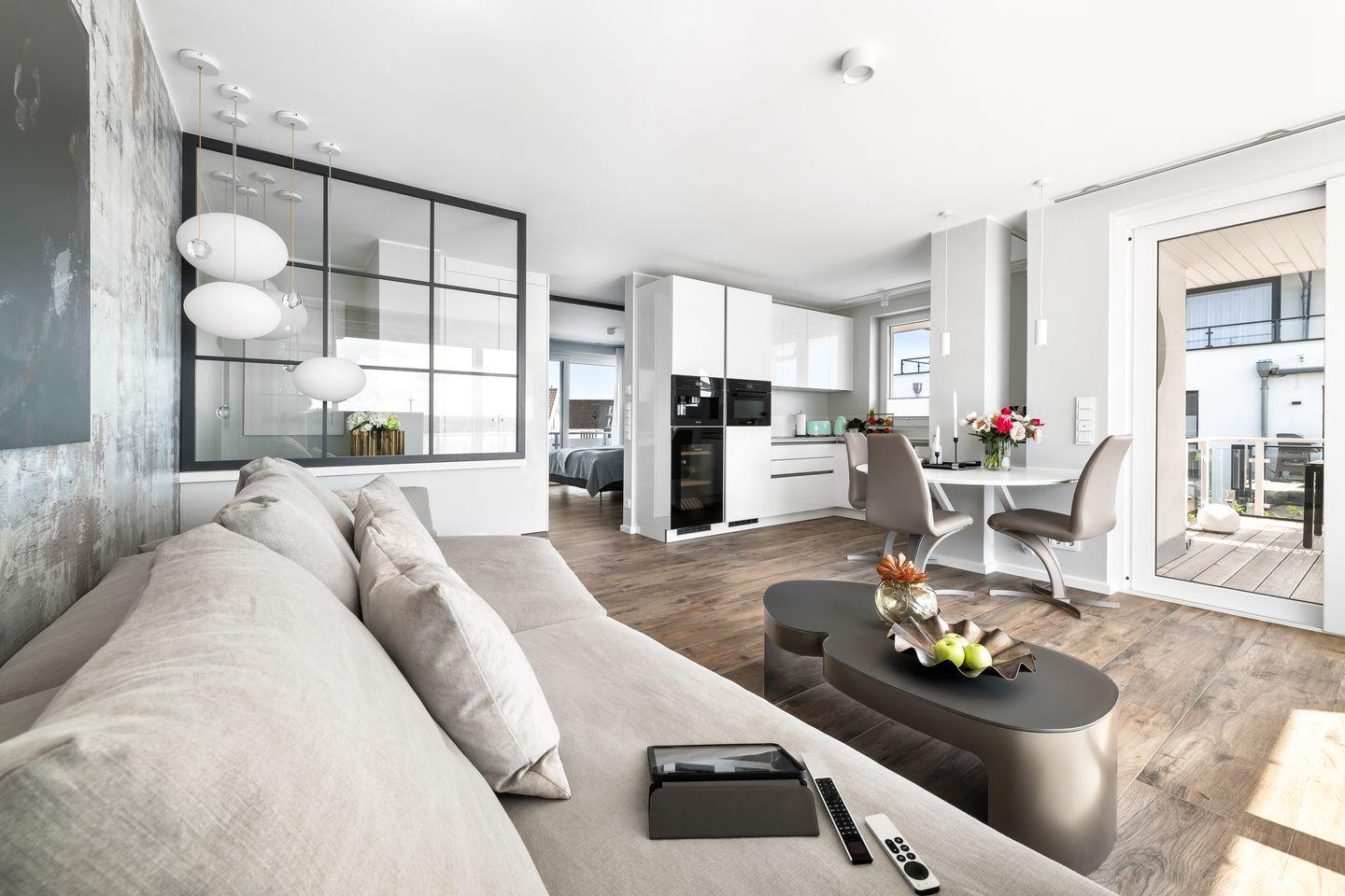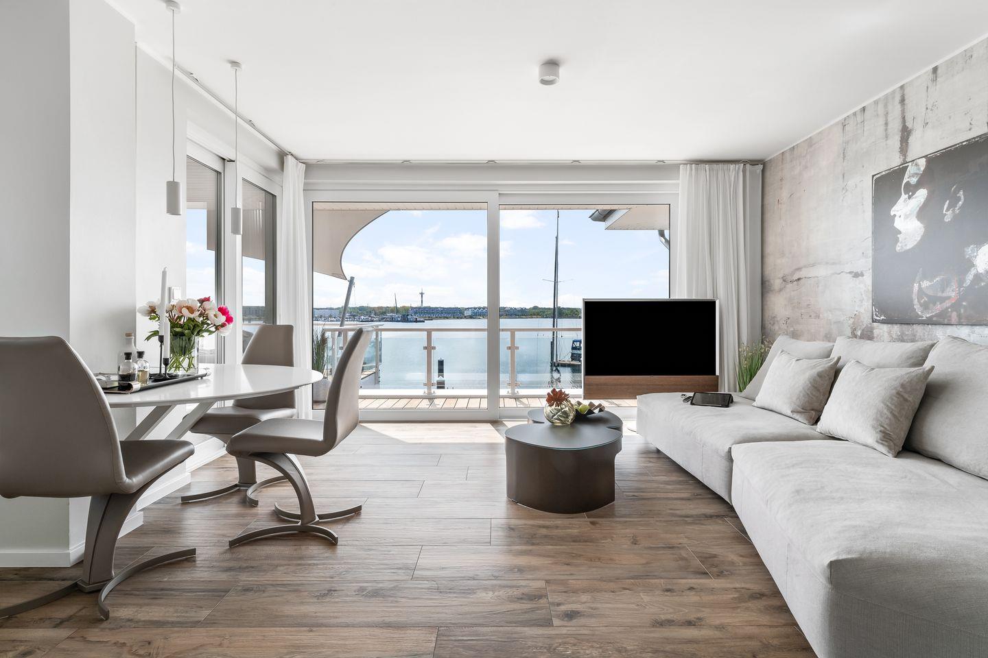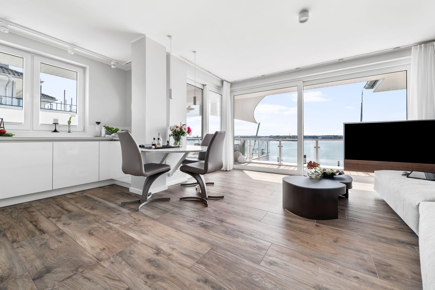 Stilvolle Ostsee-Ferienwohnung "Leuchtfeuer" mit privater Dachterrasse und traumhaftem Meerblick in Olpenitz.