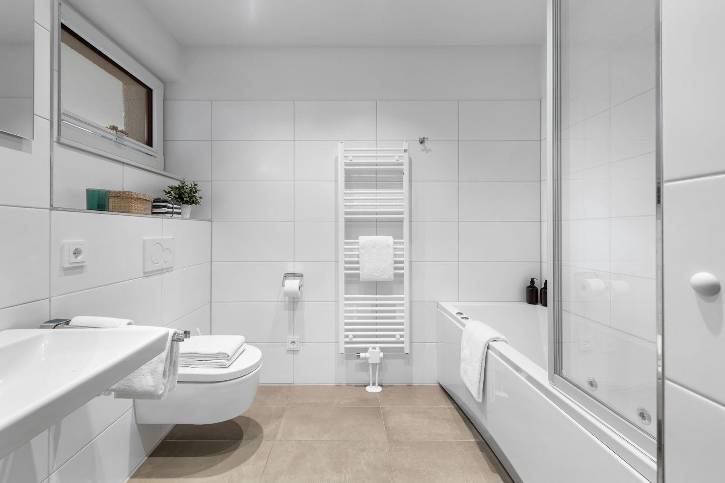 Für die Entspannung nach einem aktiven Tag sorgt die moderne Badewanne, und unsere Gäste profitieren von Annehmlichkeiten wie einer Waschmaschine, Haartrockner und Kosmetikspiegel. Zudem stehen Ihnen Gartenmöbel und Sonnenliegen zum Entspannen im Freien zur Verfügung.