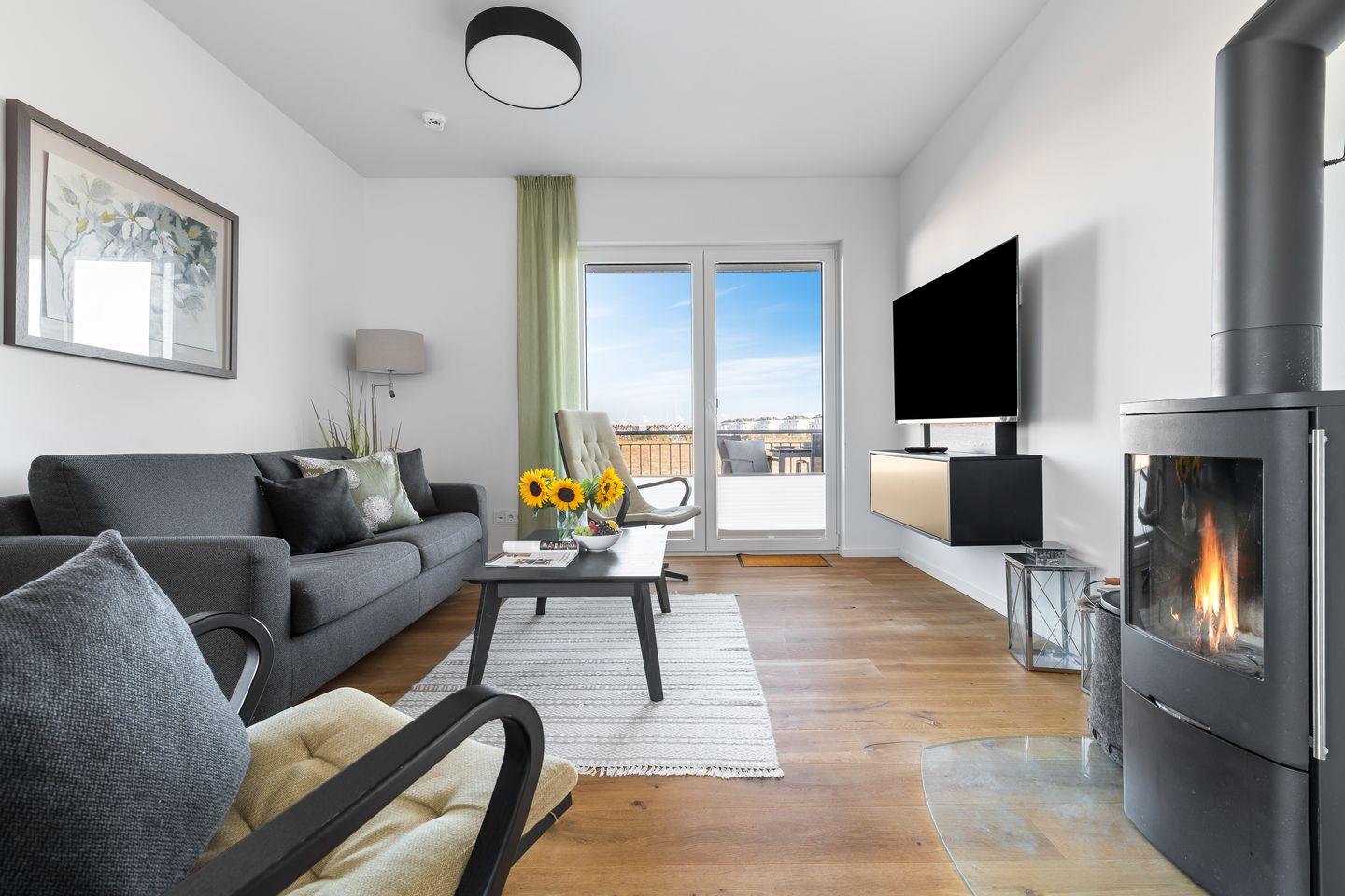 Luxusapartment mit Meerblick und Kaminofen, nur 3 Gehminuten vom Strand in Olpenitz entfernt.