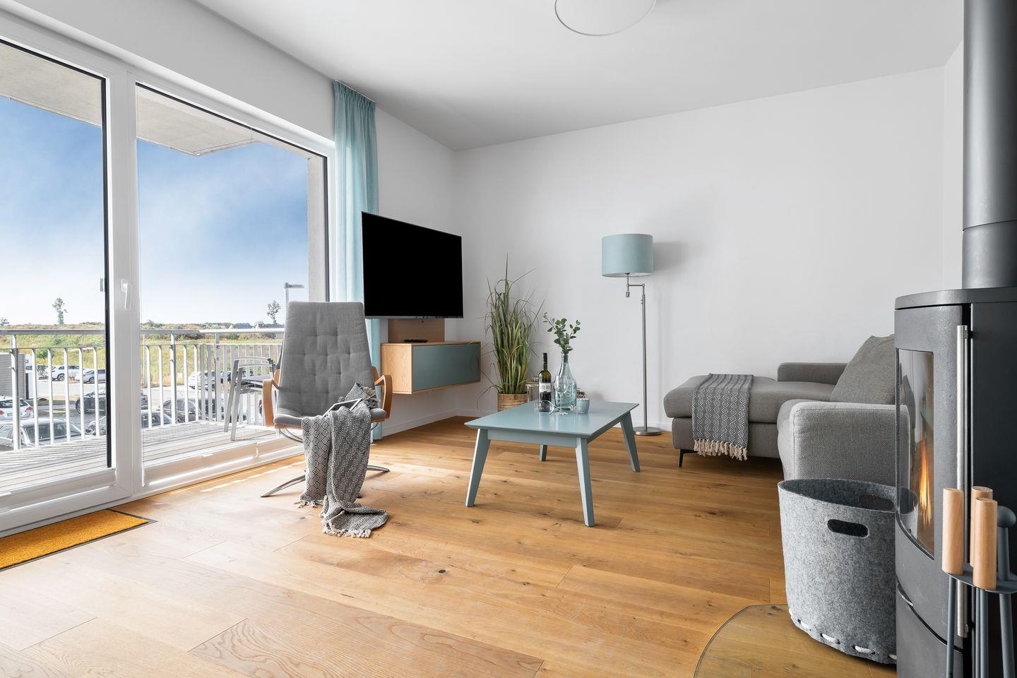 Luxusapartment "Ocean Air" mit Meerblick, Kamin und Balkon, nur 3 Minuten vom Ostseestrand entfernt.