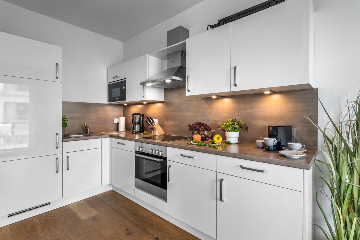 Die Einbauküche des "Ocean Storm" ist voll ausgestattet und lässt nicht nur die Herzen von Hobbyköchen höher schlagen. Durch die offene Gestaltung des Wohn-/Essbereichs ist ein gemütliches Beisammensein jederzeit möglich - sei es beim Zubereiten von Köstlichkeiten, Schnacken, oder beim Spielen.