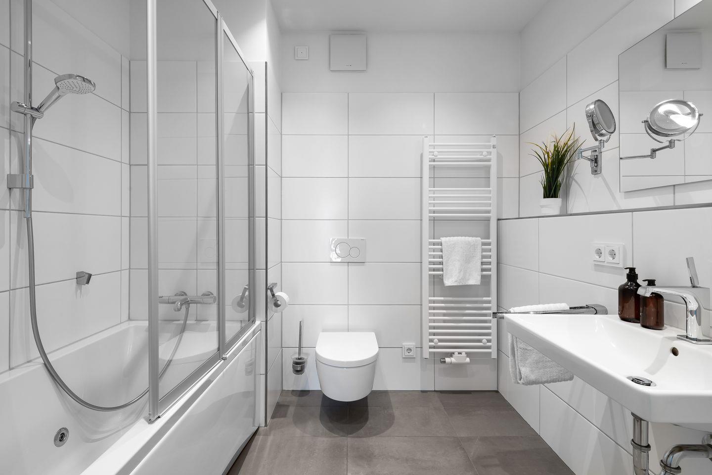 Zusätzlich zum modernen Badezimmer mit Badewanne steht den Gästen noch ein weiteres separates WC zur Verfügung.