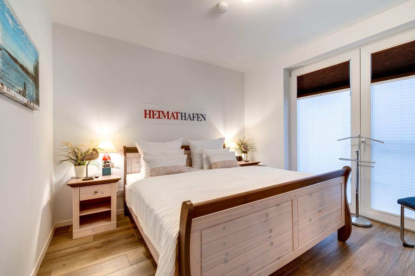 Die Schlafzimmer sind maritim und geschmackvoll eingerichtet. Ein bequemes Doppelbett, ein großer Kleiderschrank und ein weiteres TV-Gerät erwarten unsere Gäste im Masterbedroom. Das zweite Schlafzimmer ist liebevoll eingerichet mit zwei Einzelbetten, Schreibtisch, Kleiderschrank, Sitzsack und Bücherregalen. Hier fühlen sich unsere kleinen Gäste besonders schnell wie daheim.