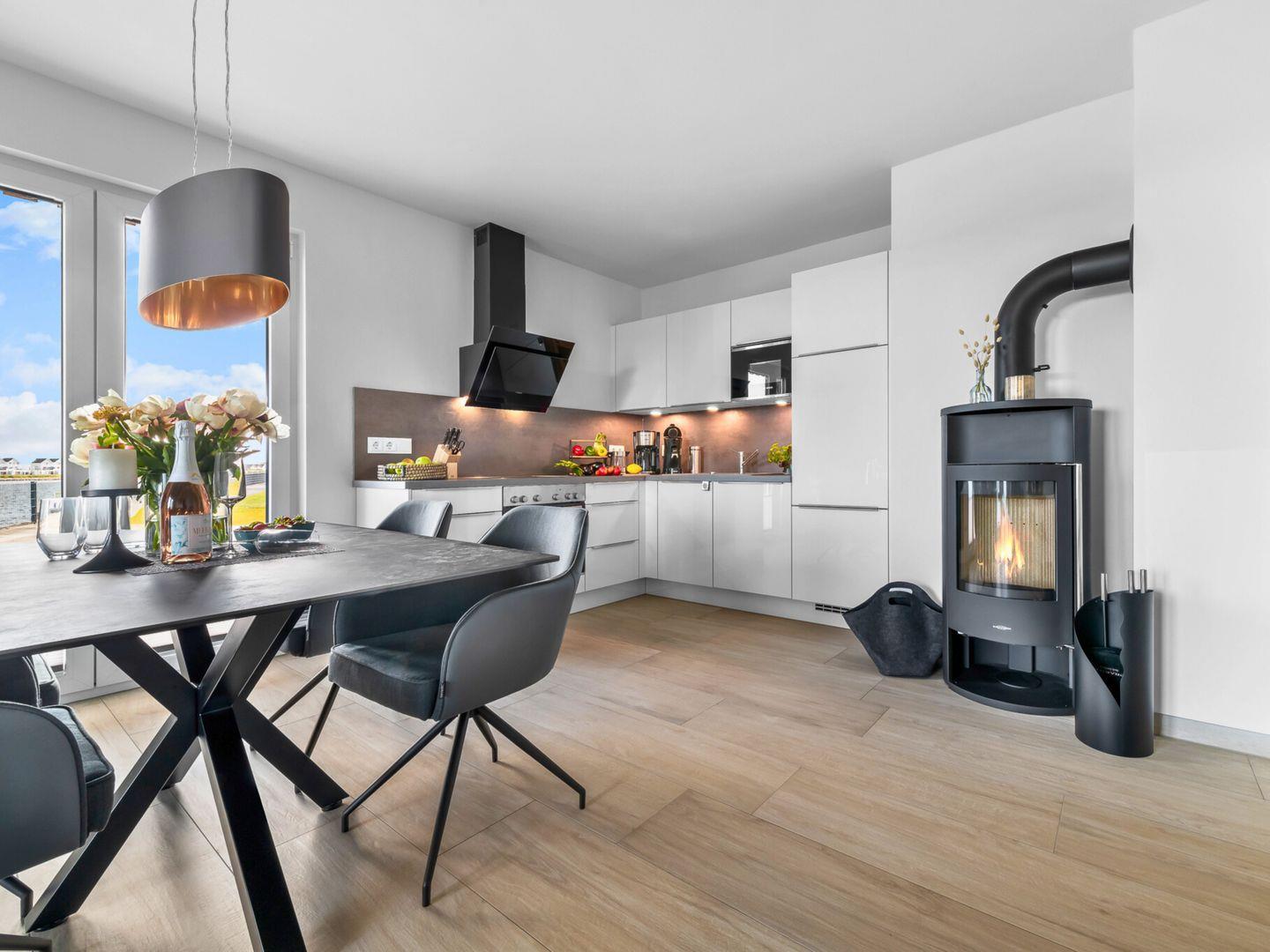 Der Wohn- und Essbereich der Ferienwohnung im Ostsee Resort Olpenitz ist der ideale Ort für gemütliche Kochabende während Ihres Ostseeurlaubs. Die hochwertig ausgestattete Küche lässt keine Wünsche offen. Hier trifft nordisch-eleganter Flair auf Gemütlichkeit. Selbst an kalten Tagen lädt das wunderschöne Apartment zu entspannten Stunden vor dem Kamin mit einer Tasse Tee oder einem Spieleabend ein.