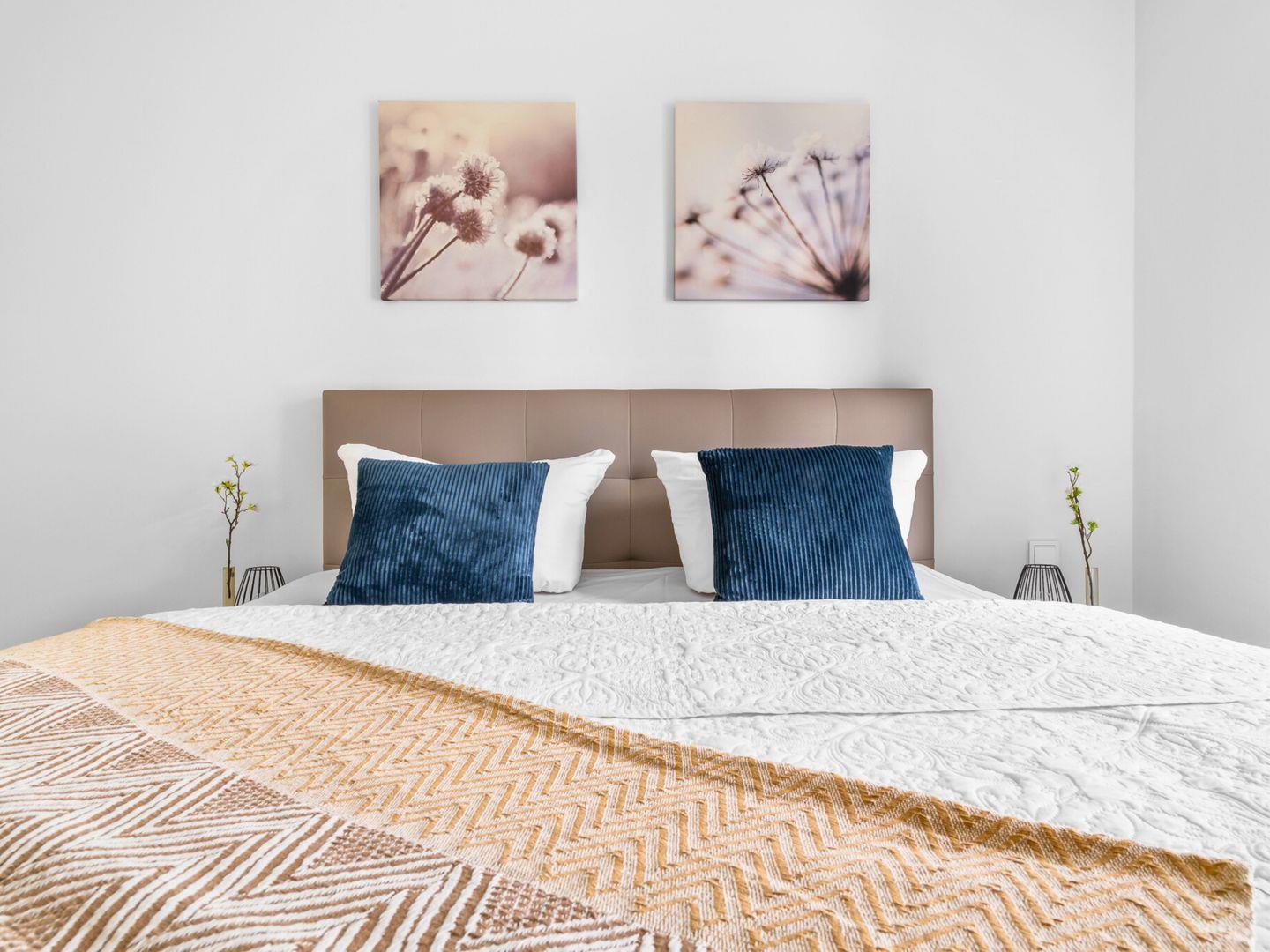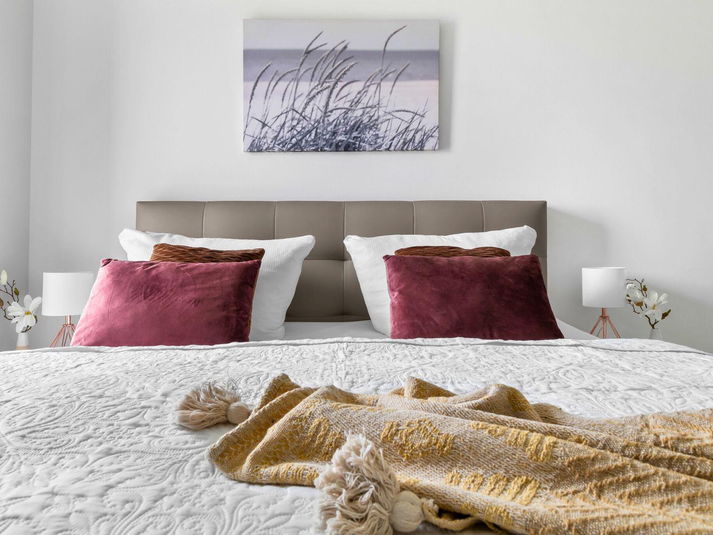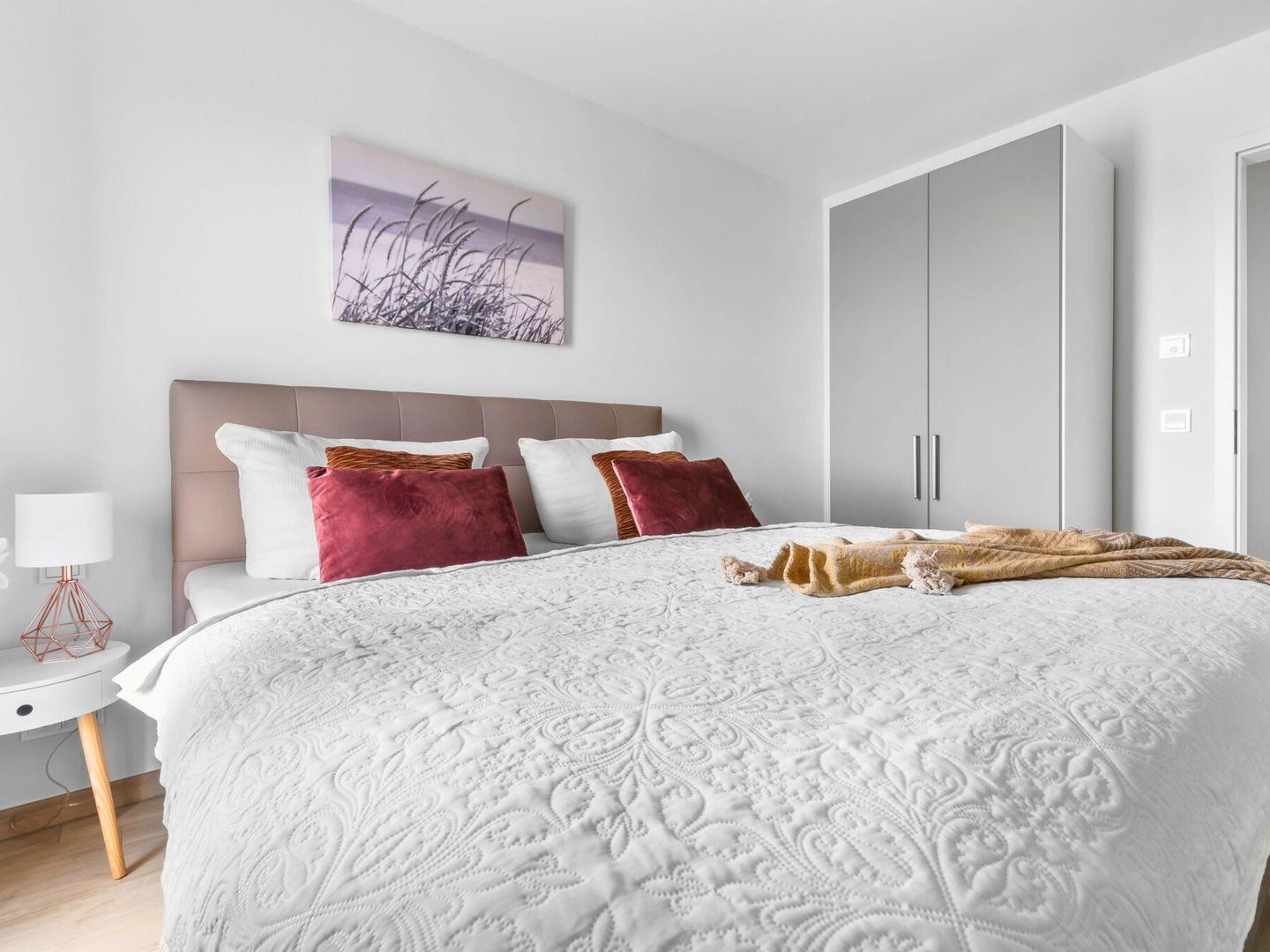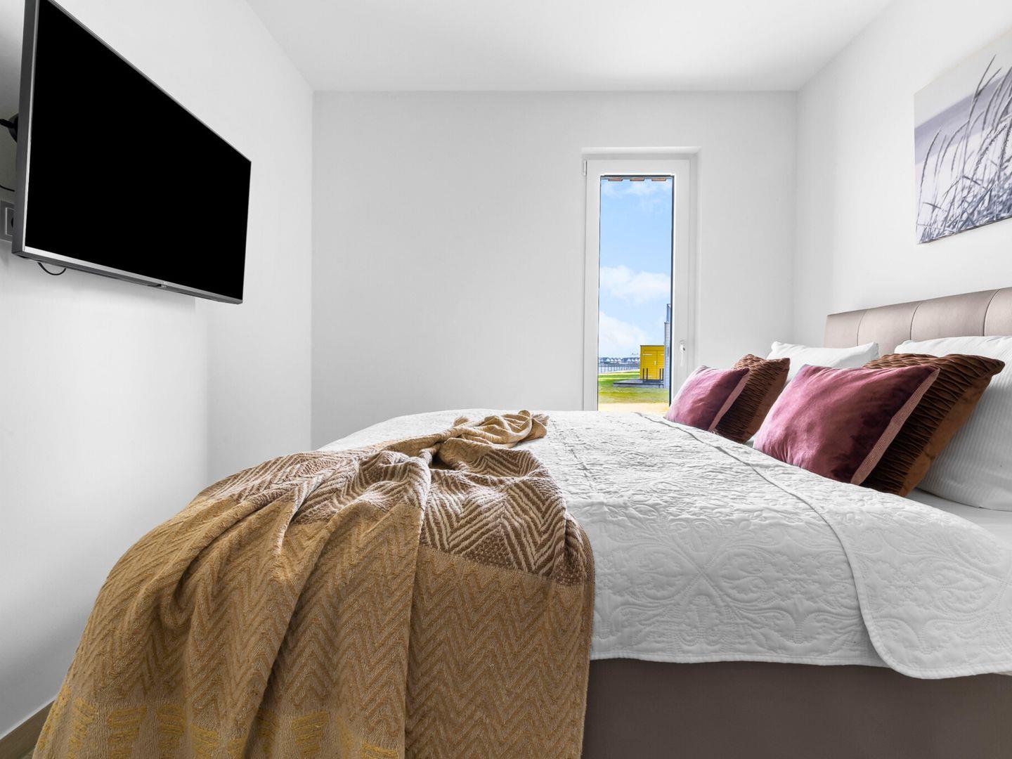 Die hellen Schlafzimmer der Ferienwohnung im Ostsee Resort Olpenitz sind mit bequemen Boxspringbetten ausgestattet und versprechen einen erholsamen Schlaf während Ihres Aufenthalts an der Ostsee. Hier können Sie sich auf schöne Träume freuen.