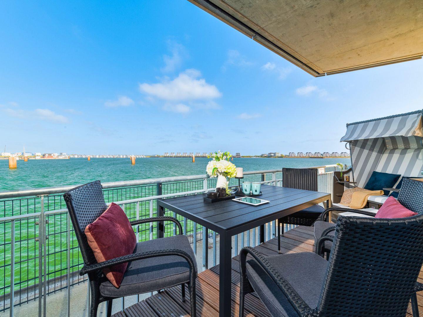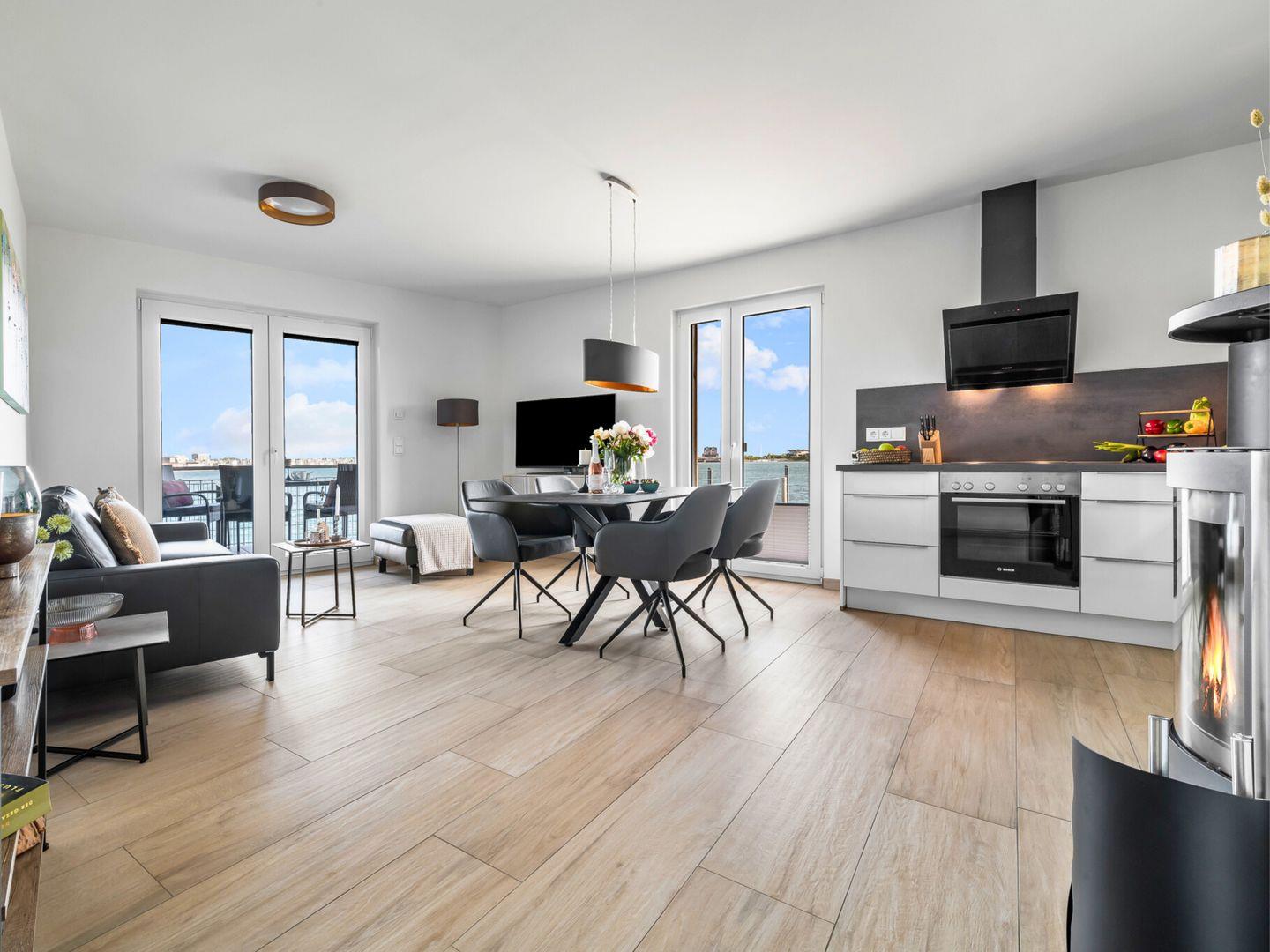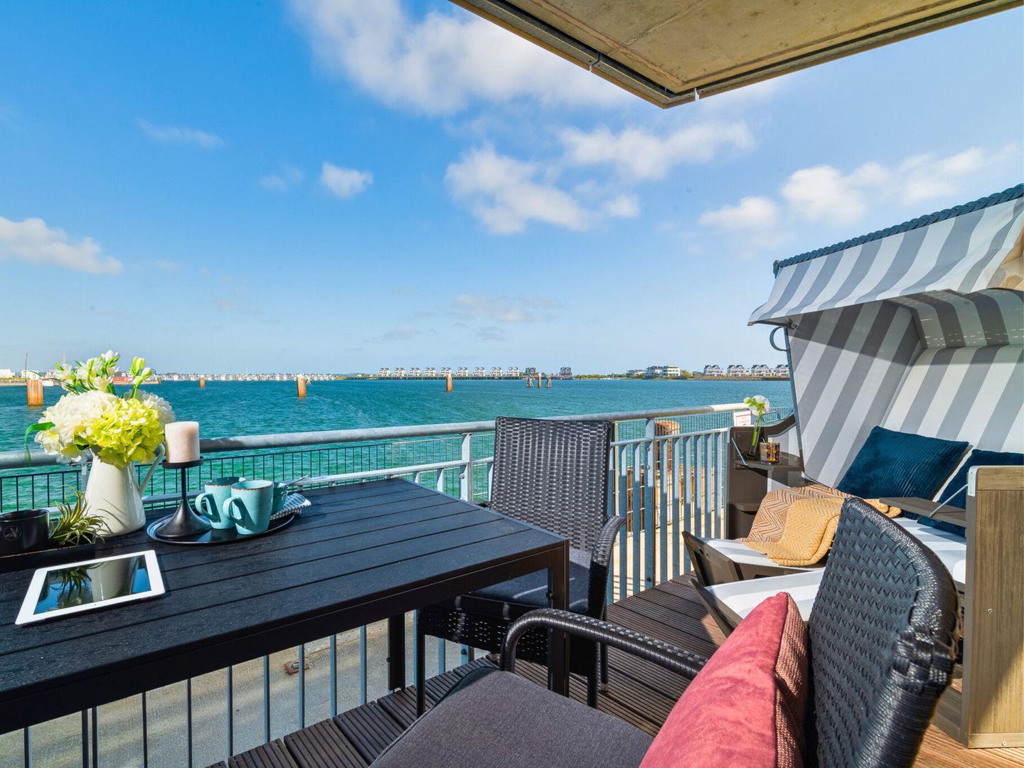 Luxusferienwohnung mit herrlichem Blick auf das Hafenbecken, gehobener Ausstattung, Infrarotsauna und Terrasse in Traumlage.