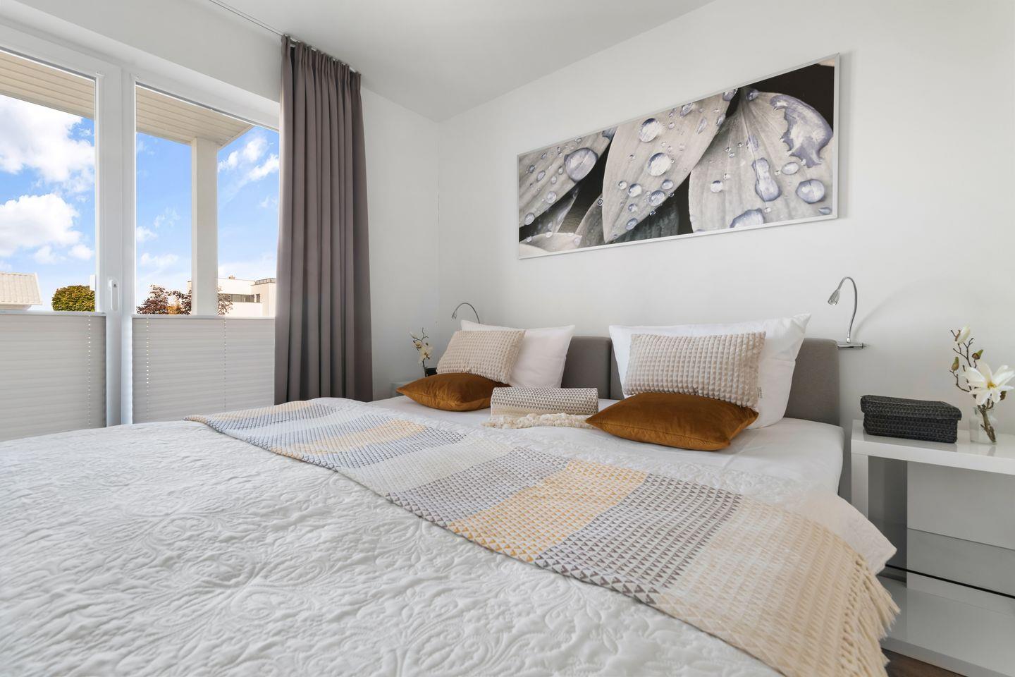 Barrierefreie Luxus-Ferienwohnung SeaLove1 mit Whirlwanne und Traumblick auf Yachthafen und Ostsee.