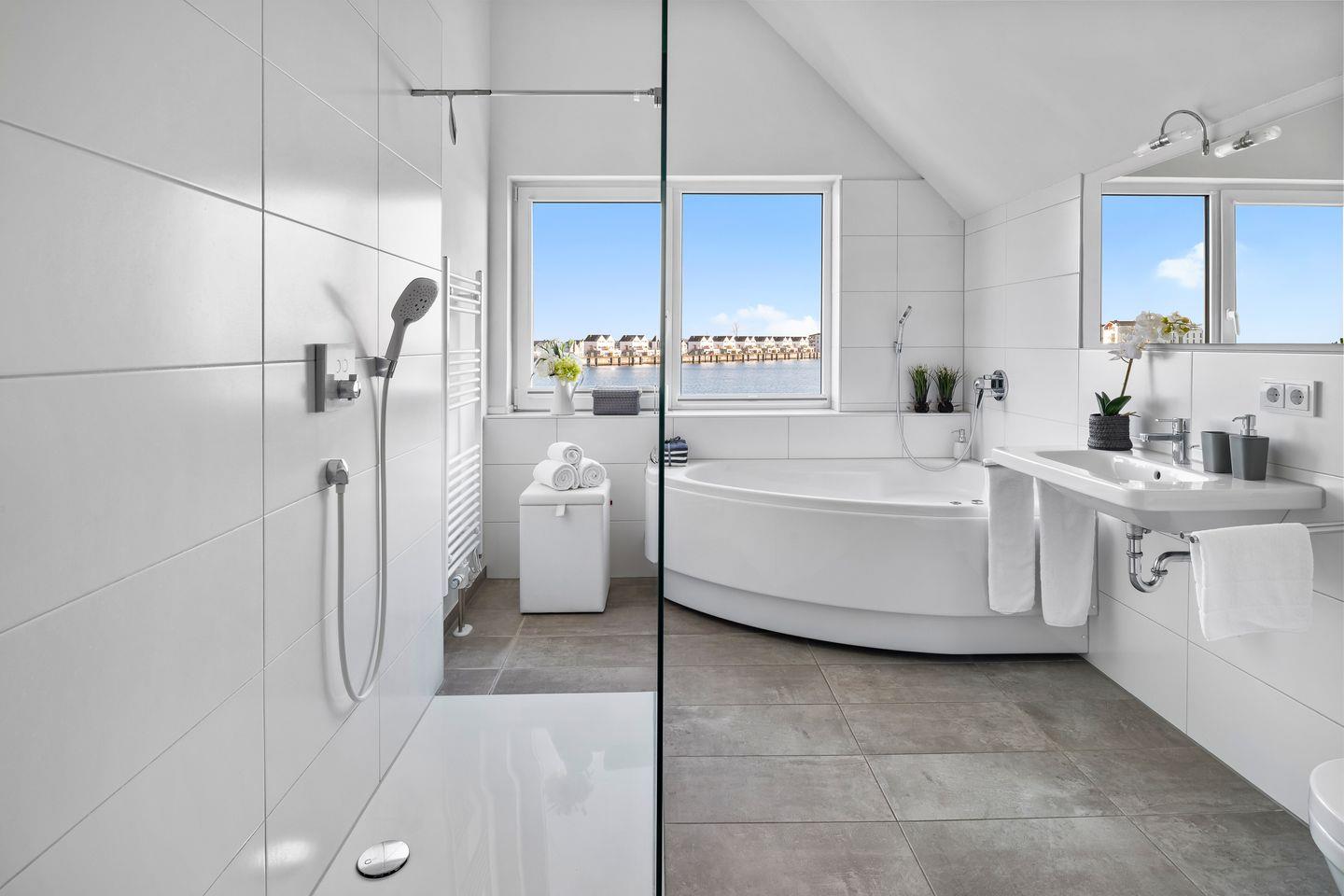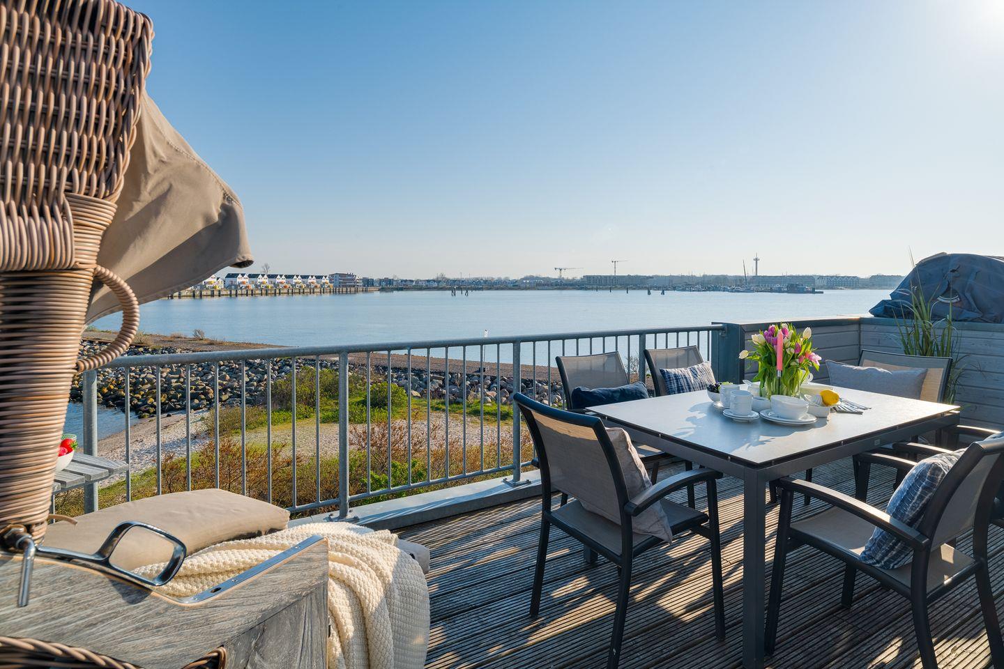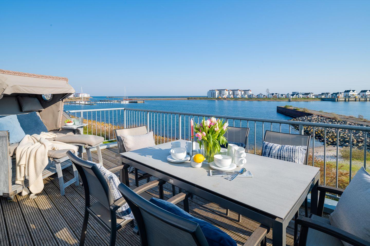 Luxus-Ferienwohnung SeaPearl mit Sauna, Whirlpool und traumhaftem Blick auf Yachthafen und Ostsee.