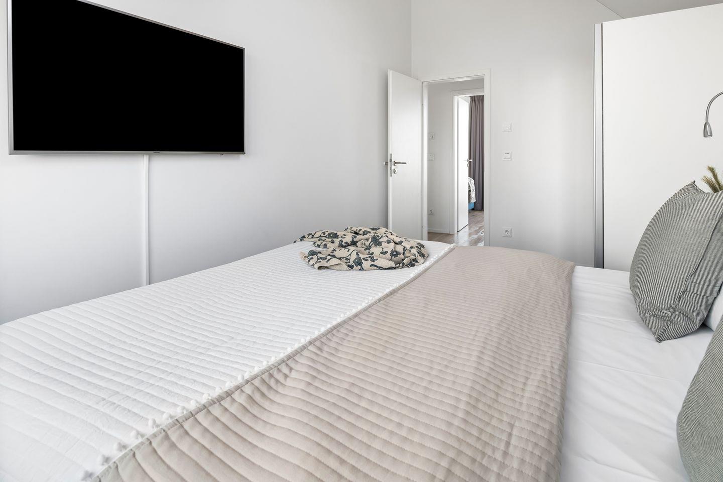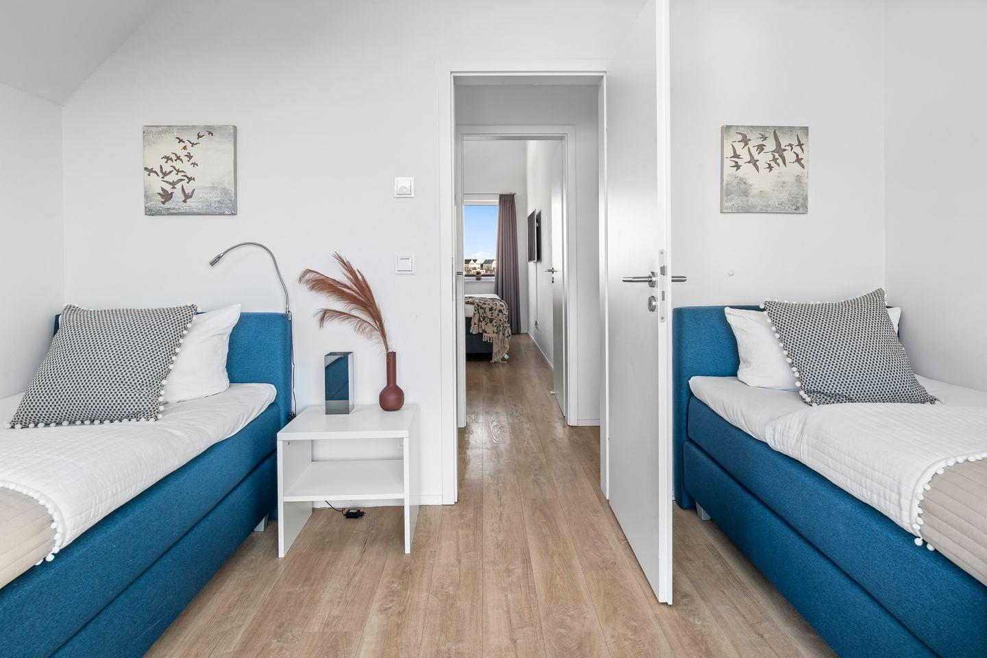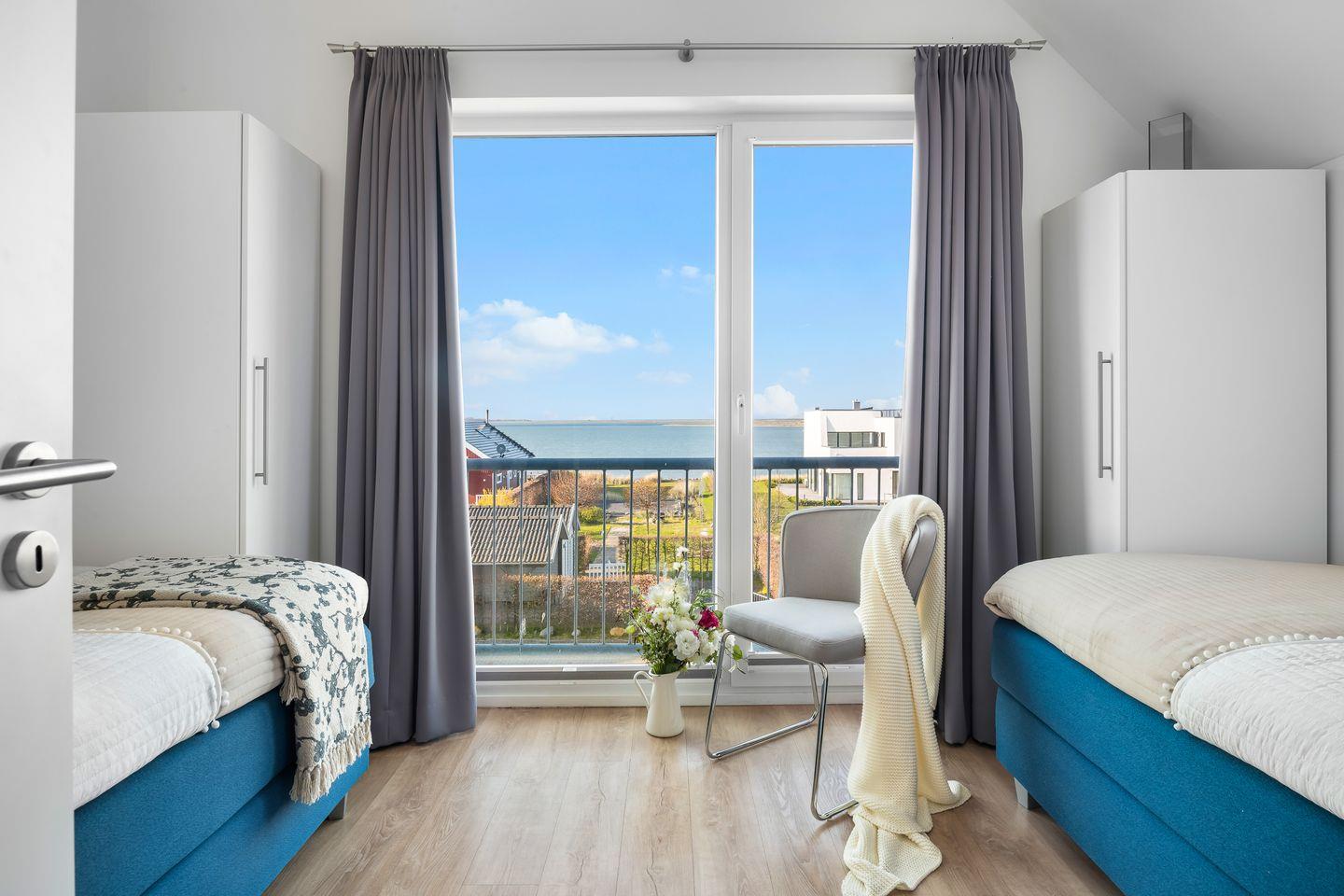 Das zweite Schlafzimmer verfügt über zwei Einzelbetten, zwei getrennte Kleiderschränke und ein Nachttischchen. Mittels lichtundurchlässiger Gardinen können die jeweiligen Räume verdunkelt werden und auch die Boxspringmatratzen werden ihr Übriges für einen erholsamen Schlaf dazu tun.