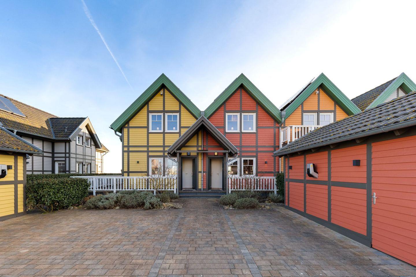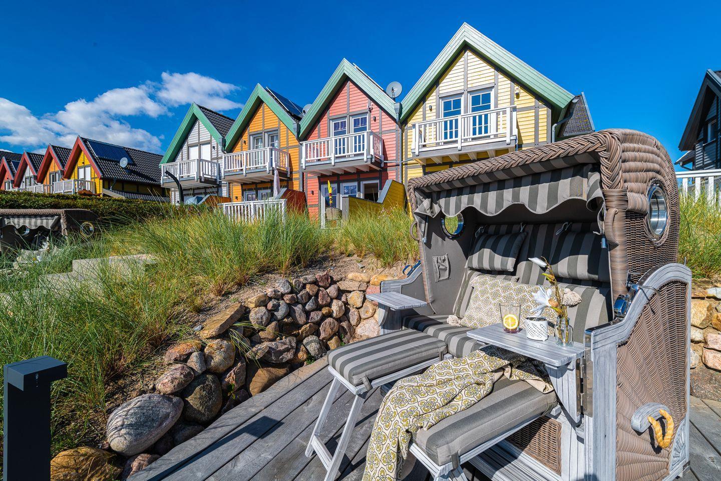 Das Ferienhaus „Hafenglück“ im Ostseeresort Olpenitz begeistert mit seiner sonnigen, gelben Fassade und einer Wohnfläche von ca. 130 m². In warmen Gelbtönen eingerichtet, bietet es einen behaglichen Landhausstil und Platz für vier Personen. Der Wohnbereich im Erdgeschoss mit Blick auf den Hafen und die Ostsee, ergänzt durch eine moderne Küche. Zwei Schlafzimmer mit Bad befinden sich im Obergeschoss. Zu den Annehmlichkeiten zählen zwei Terrassen, ein Saunahaus und ein Parkplatz mit E-Ladesäule.