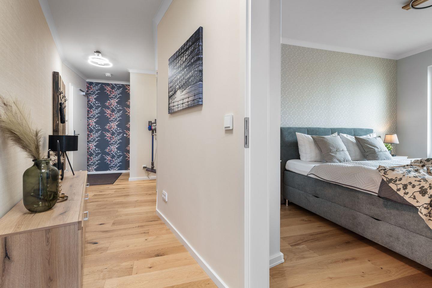 Über einen langen, lichtdurchfluteten Flur gelangen Sie in den warm-maritim gehaltenen Wohn- und Esszimmerbereich. Auf dem gemütlichen Sofa können Sie den erlebten Tag revue passieren lassen und beispielsweise bei einem guten Glas Wein in Ihrem Lieblingsbuch schmökern.