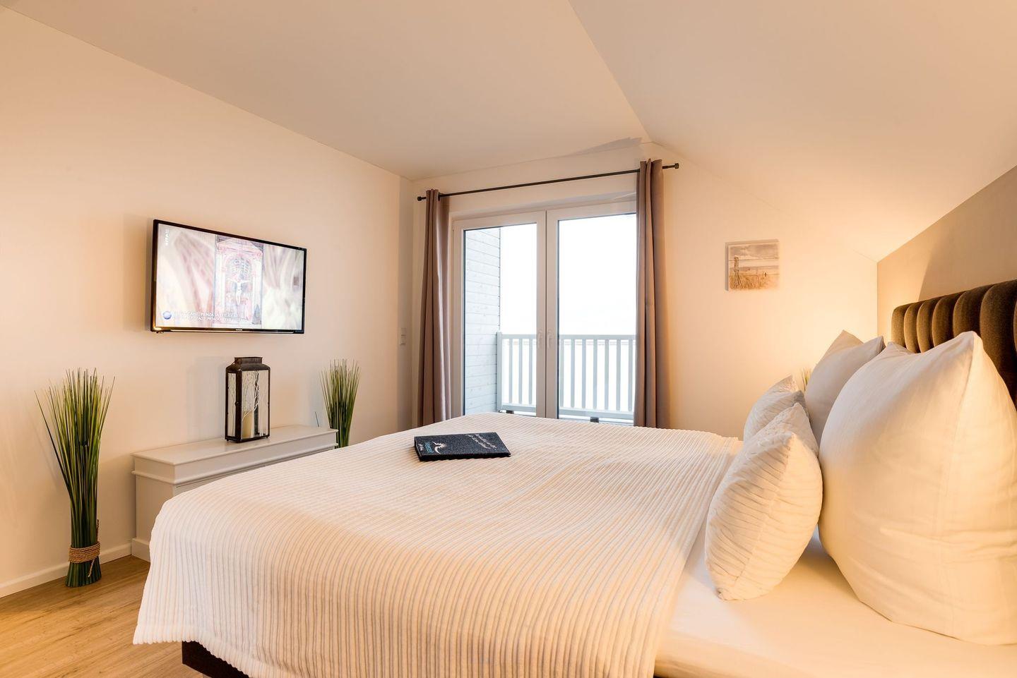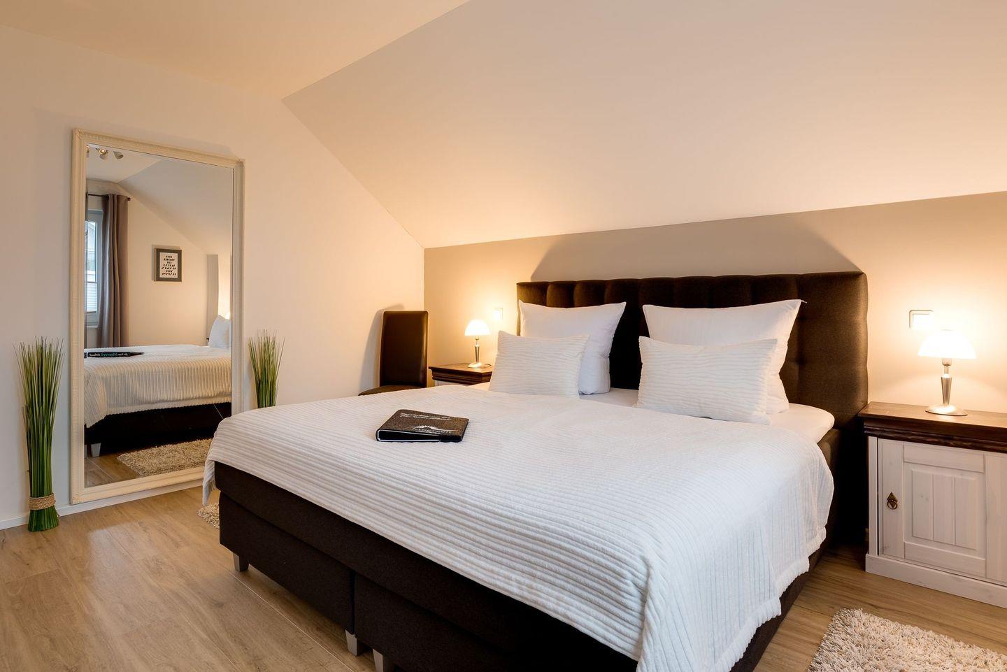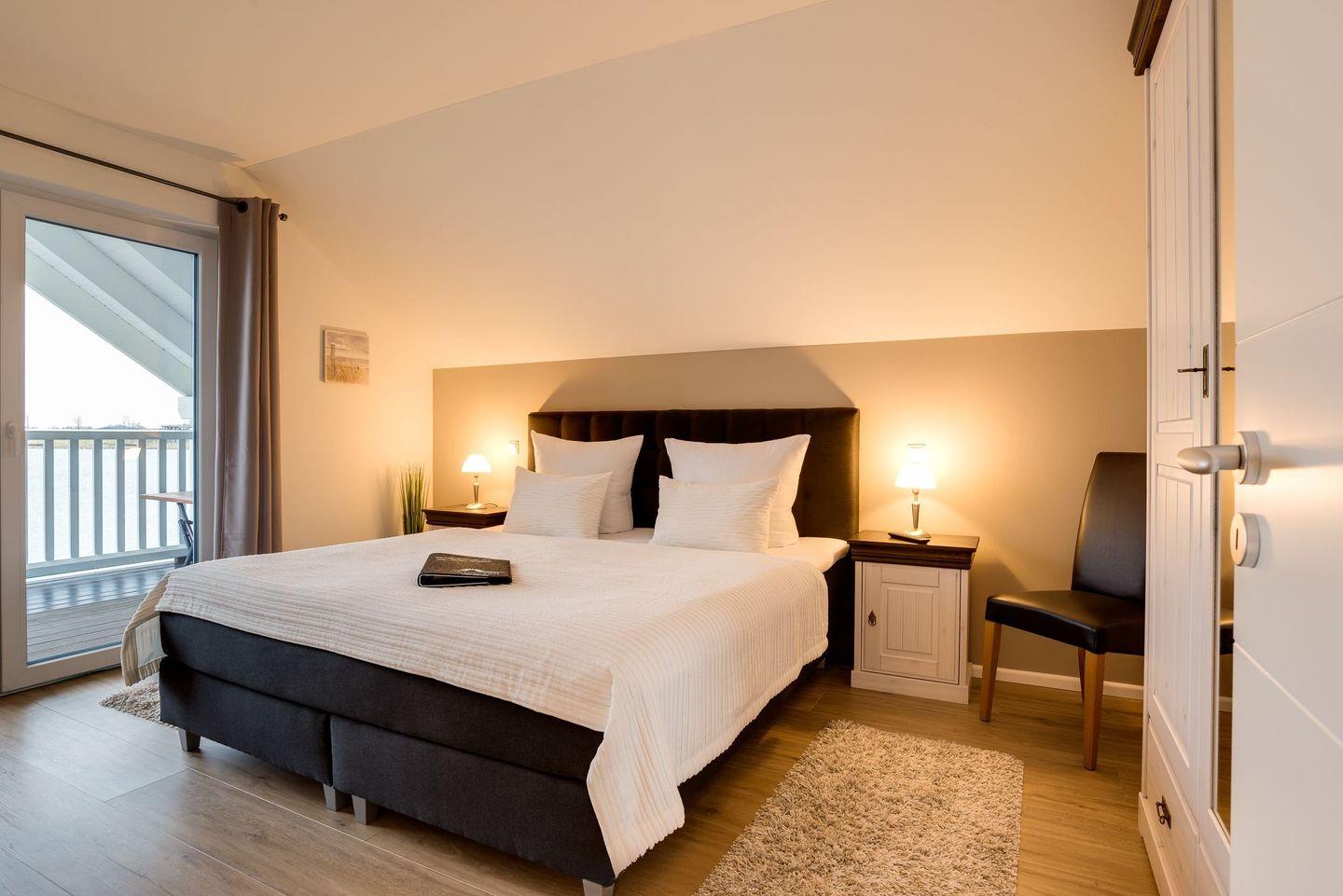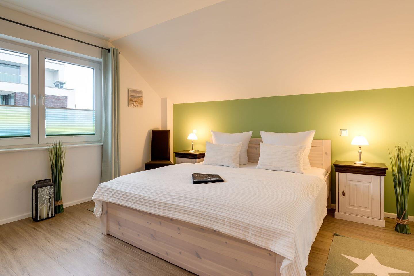 Das Ferienhaus "StrandLiebe" verfügt über drei gemütliche Schlafzimmer im Obergeschoss, alle ausgestattet mit großen Doppelbetten, Kleiderschränken und Smart-TVs. Das geräumige Badezimmer bietet Ihnen eine große Badewanne mit Meerblick, eine Regendusche und eine große finnische Sauna (ebenfalls mit Blick auf die Ostsee) – perfekt für einen erholsamen Urlaub zu jeder Jahreszeit.