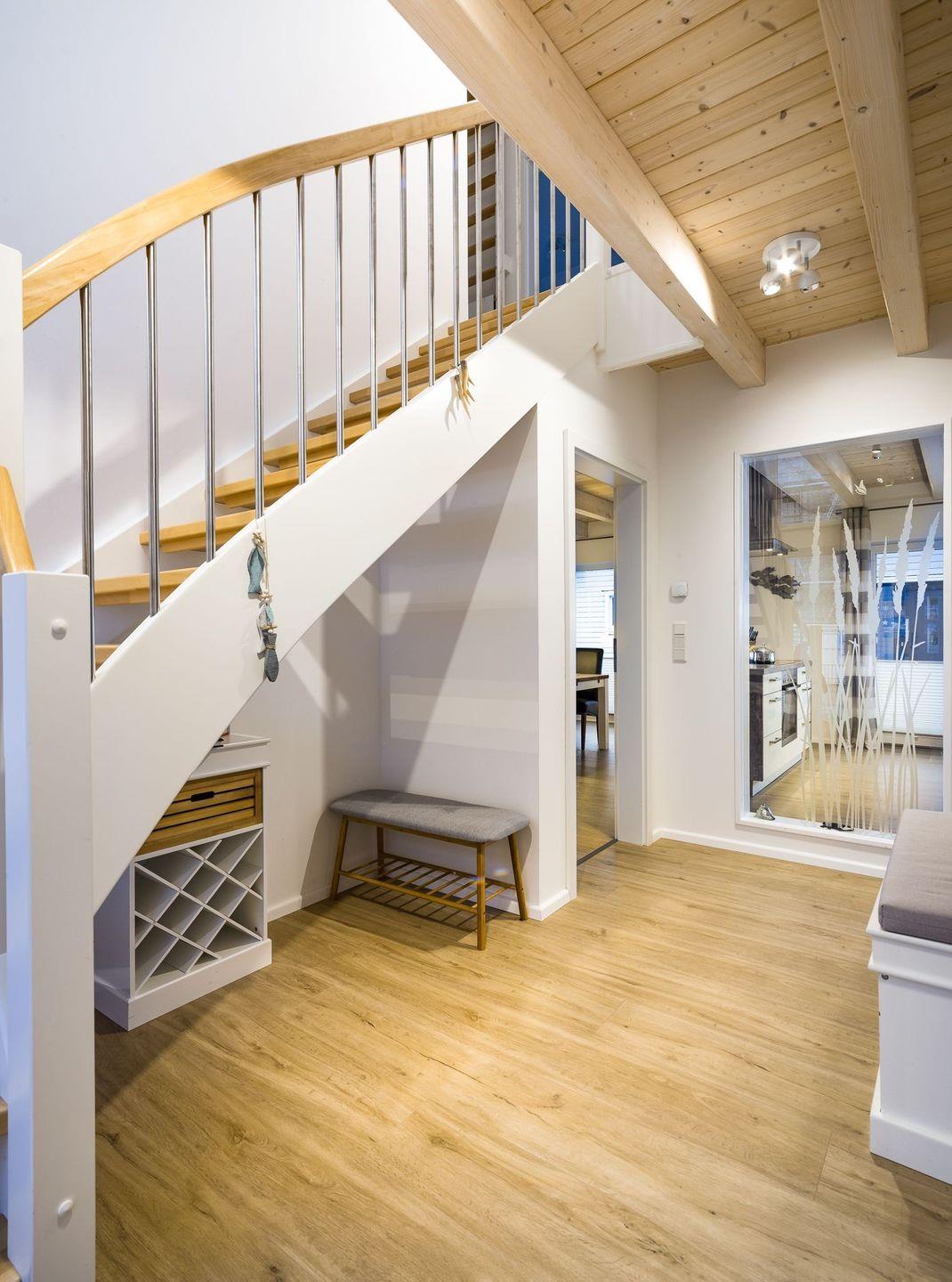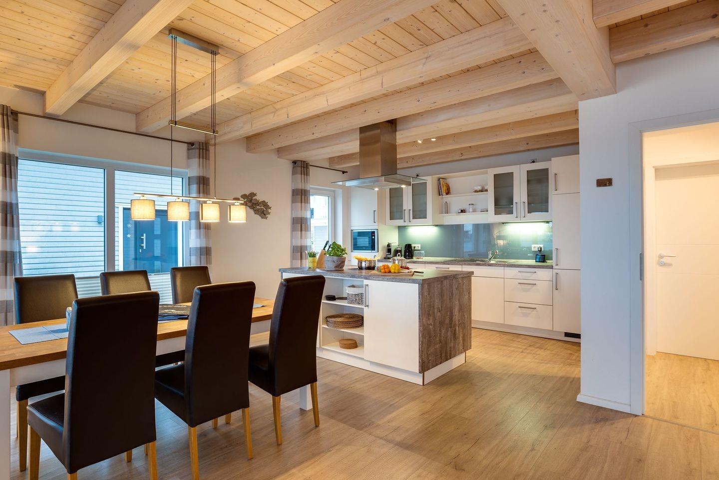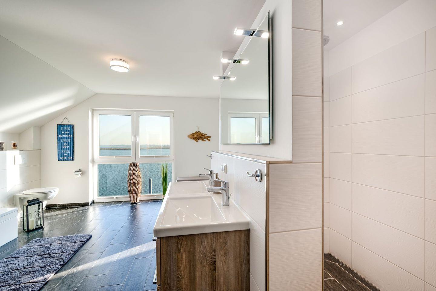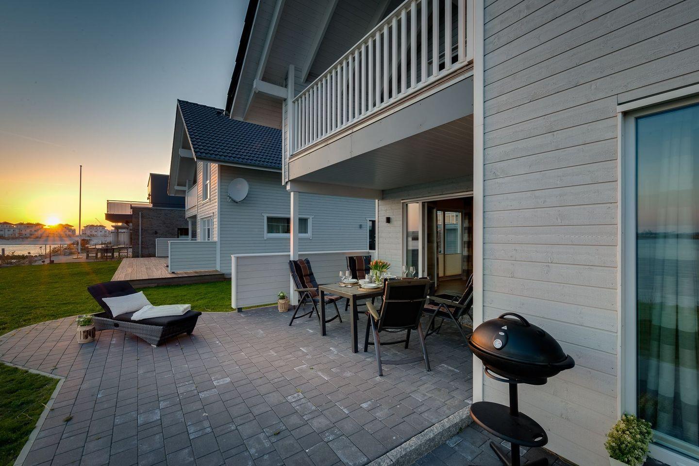 Im Erdgeschoss finden Sie den großen Wohn- und Essbereich mit voll ausgestatteter Küche und einer großen Kochinsel. Der runde Kaminofen verleiht dem Raum eine gemütliche Atmosphäre und bietet an kälteren Tagen eine angenehme Wärme. Draußen erweitert eine direkt am Wasser gelegene Terrasse mit komfortablen Gartenmöbeln und Grill die Wohnfläche ins Freie.