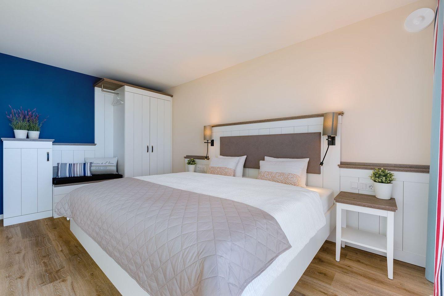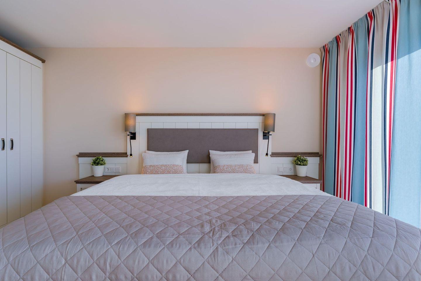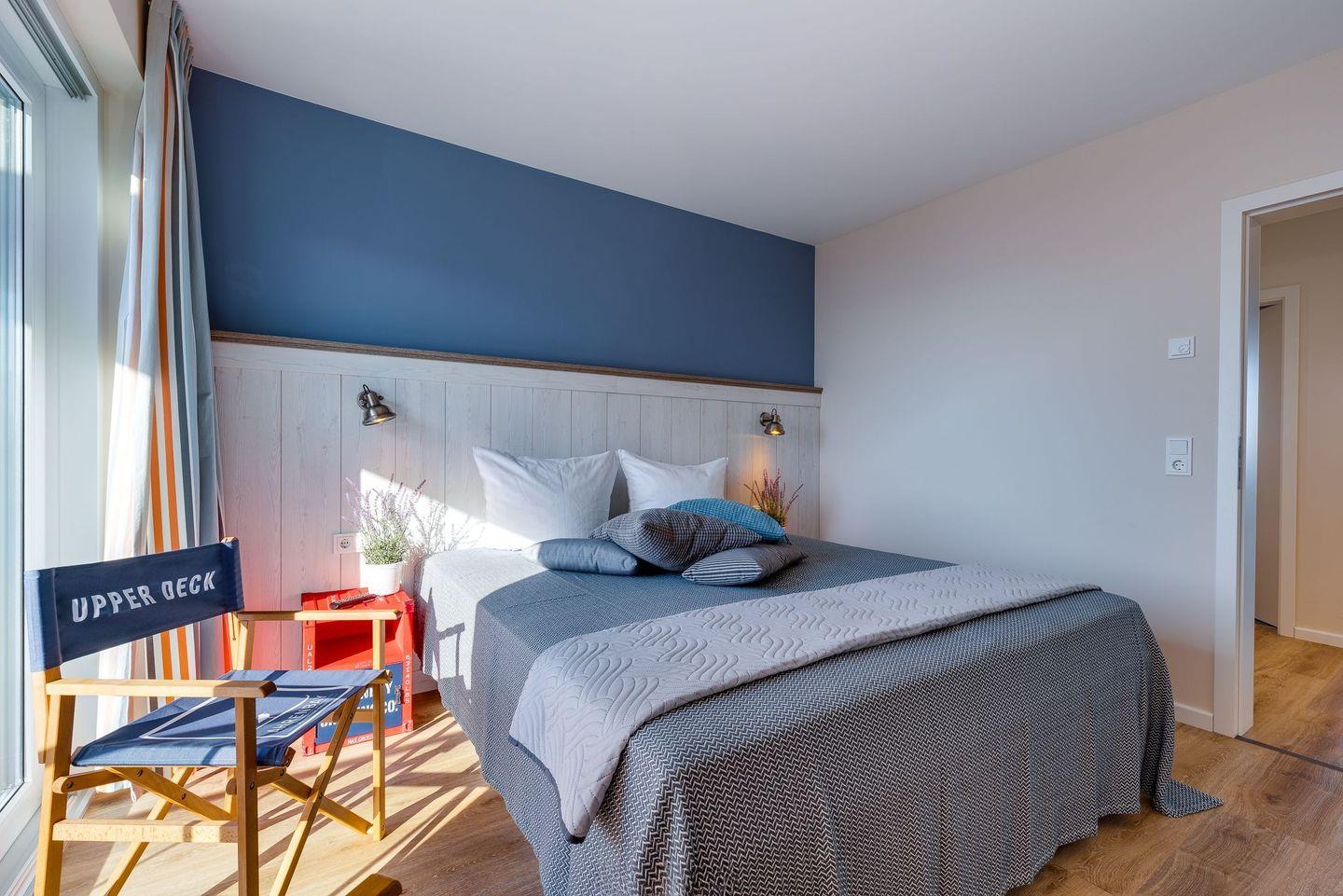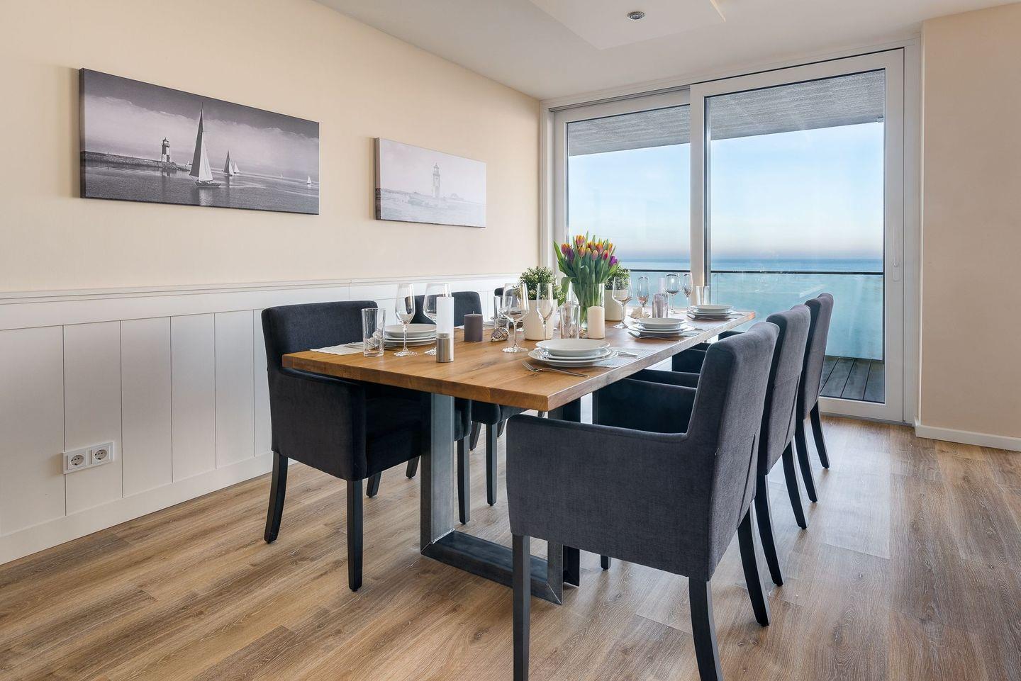 Das luxuriöse Apartment "Upper Deck" bietet einen erholsamen Aufenthalt mit freiem Blick auf das Meer. Es befindet sich im ersten Stock eines Apartmenthauses, direkt an der Ostseeküste.