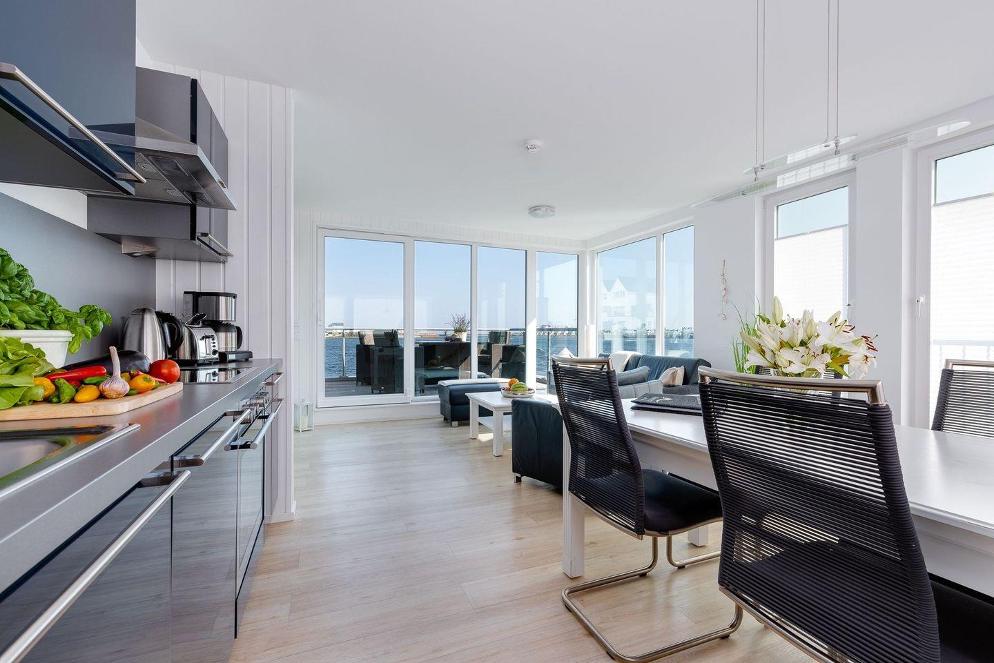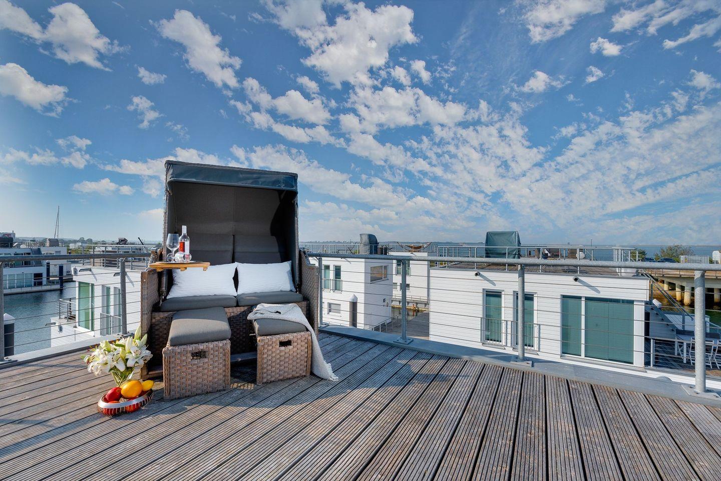 Erleben Sie den Ostseeurlaub im Wasserhaus Klabautermann mit Dachterrasse, Sauna und Panoramablick auf Ostsee und Schlei.