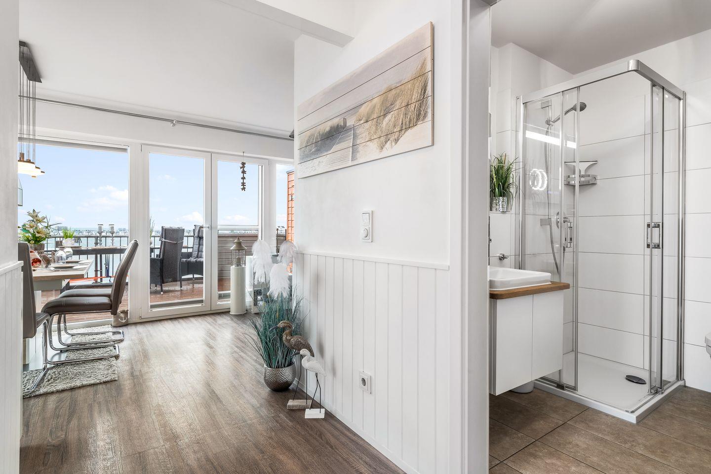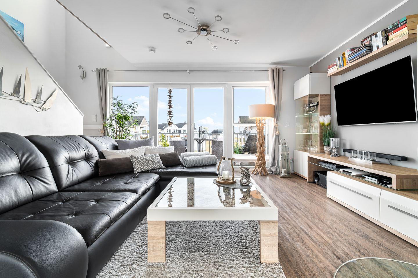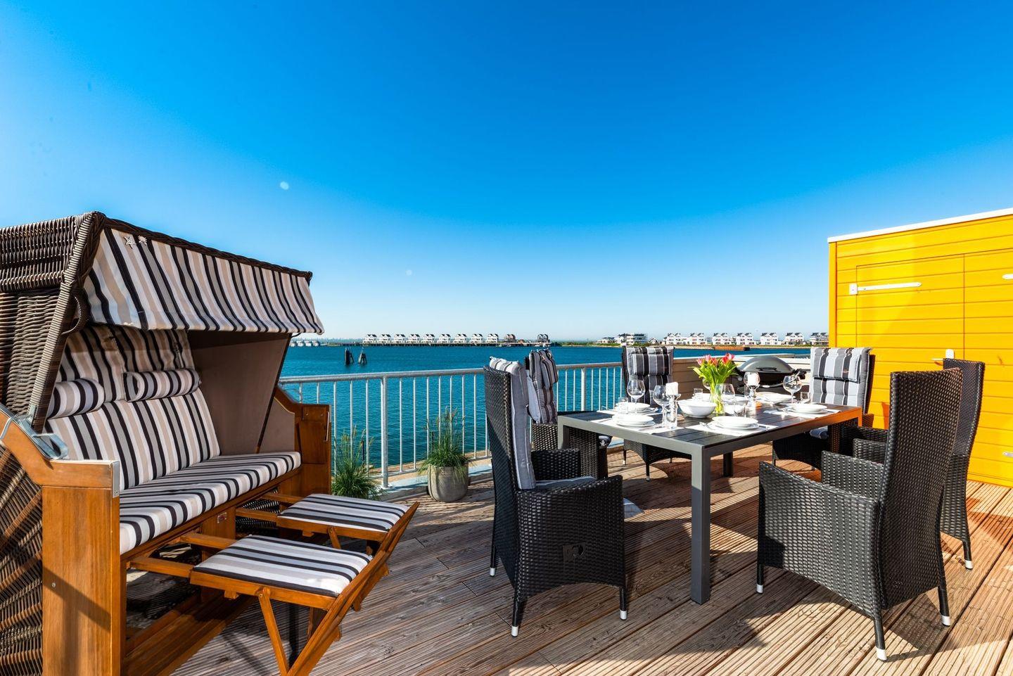 Luxus-Maisonette-Ferienwohnung "HafenLounge" direkt am Wasser mit Sauna, Whirlpool und traumhaftem Blick auf Yachthafen und Ostsee.