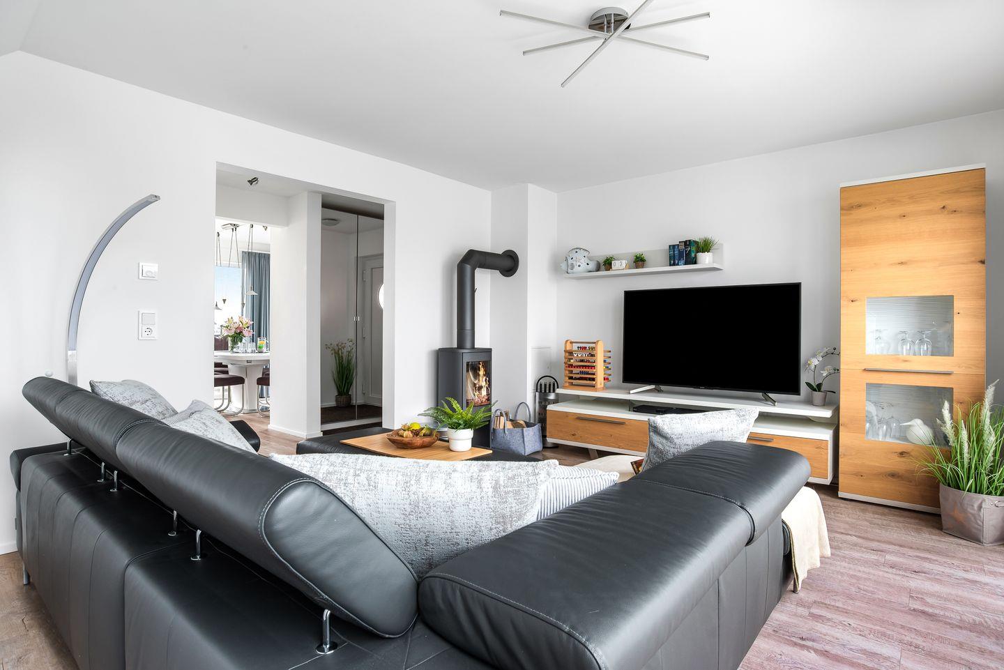 Diese Maisonettewohnung "Santiano Lounge" liegt im 1. Obergeschoss und Dachgeschoss eines Doppelhauses in erster Reihe am Wasser. Der große Wohnbereich, mit Ewald Schillig Sofa, welches sich mittels Sensoren unter der Rückenlehne in eine Loungelandschaft oder ein Schlafsofa ausfahren lässt, bietet neben einem großen Smart-TV ( 70 Zoll ) mit Home-Entertainment MagentaTV einen Kamin und Zugang zum Balkon, auf dem unsere Gäste den Sonnenaufgang beim Frühstück genießen können.