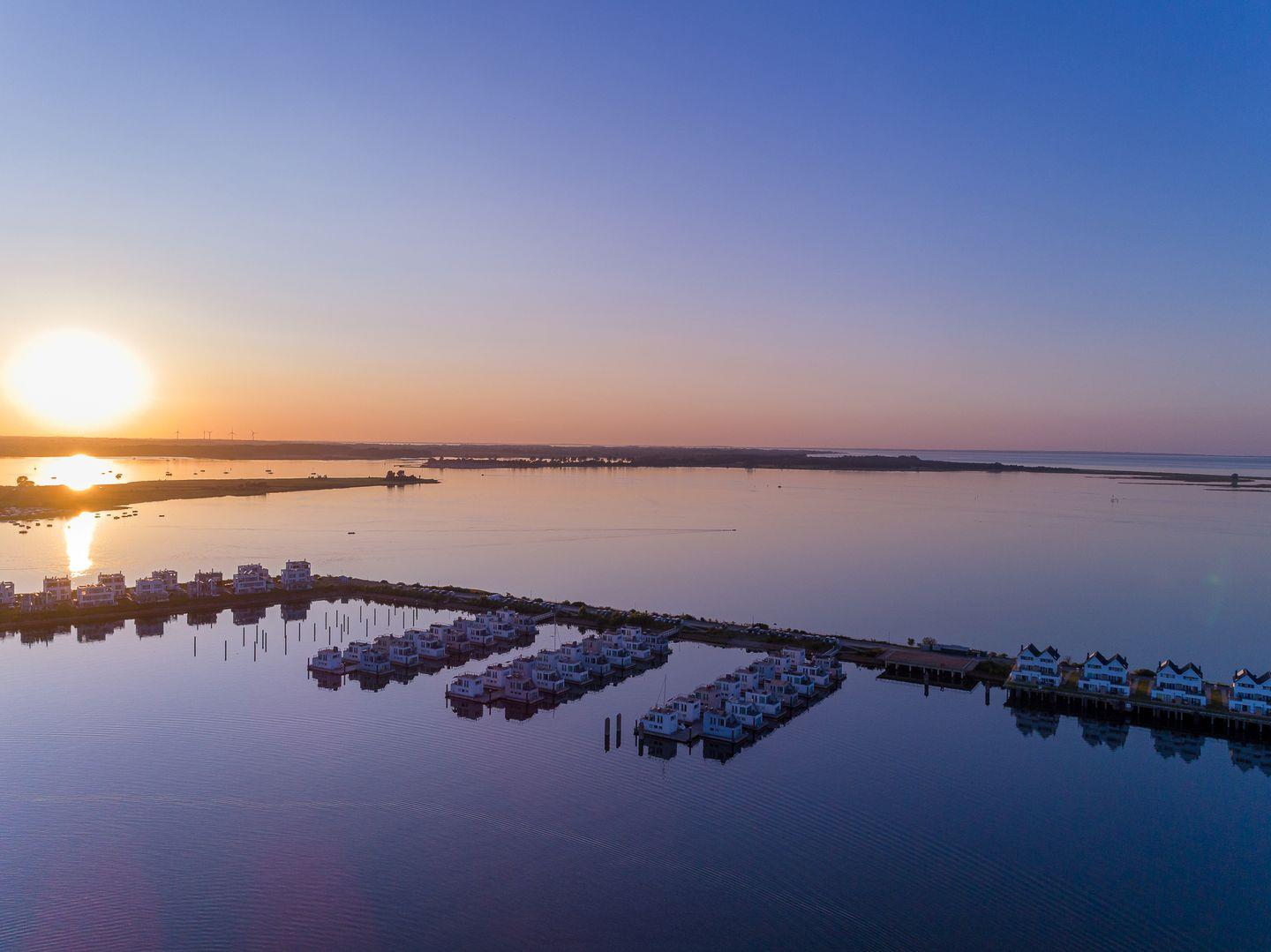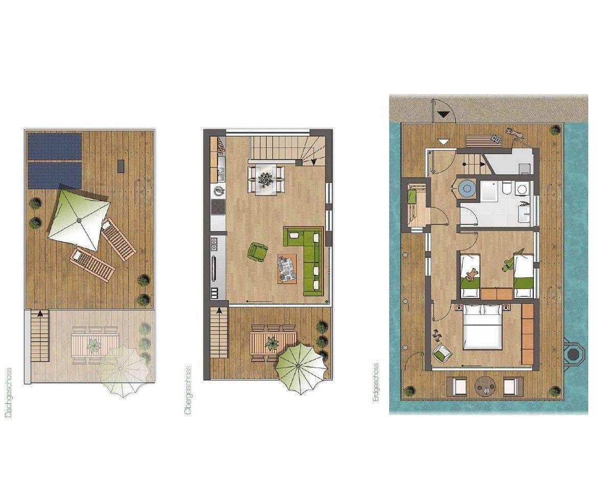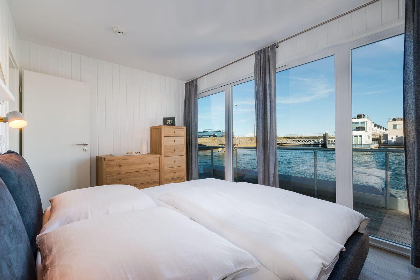 Luxuriöses, schwimmendes Wasserhaus mit Sauna, Dachterrasse und Meerblick im Ostseeresort Olpenitz.