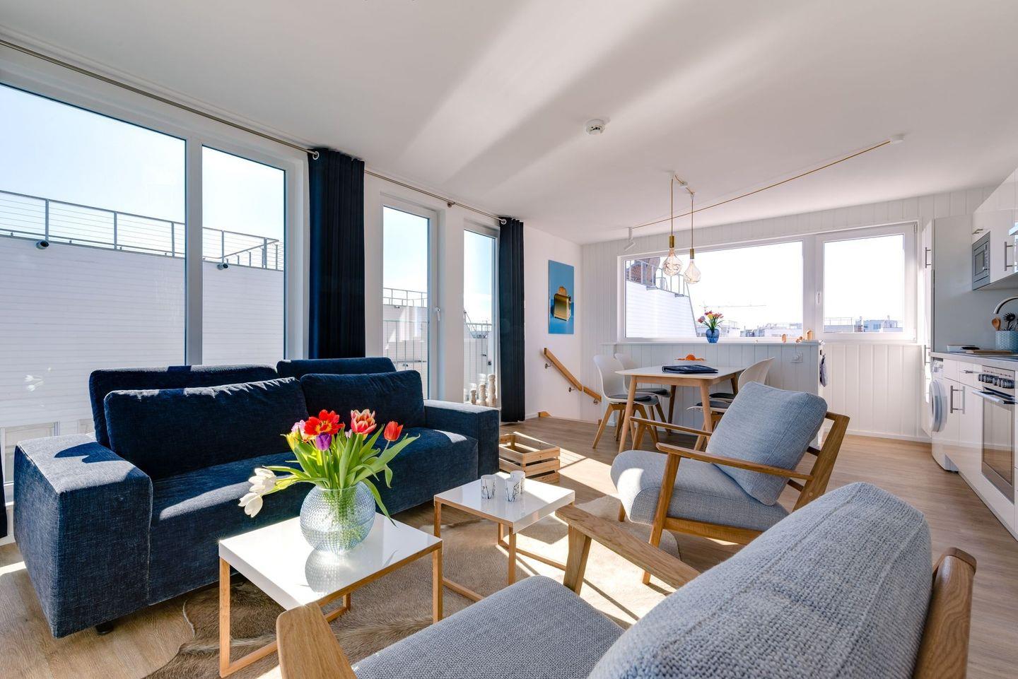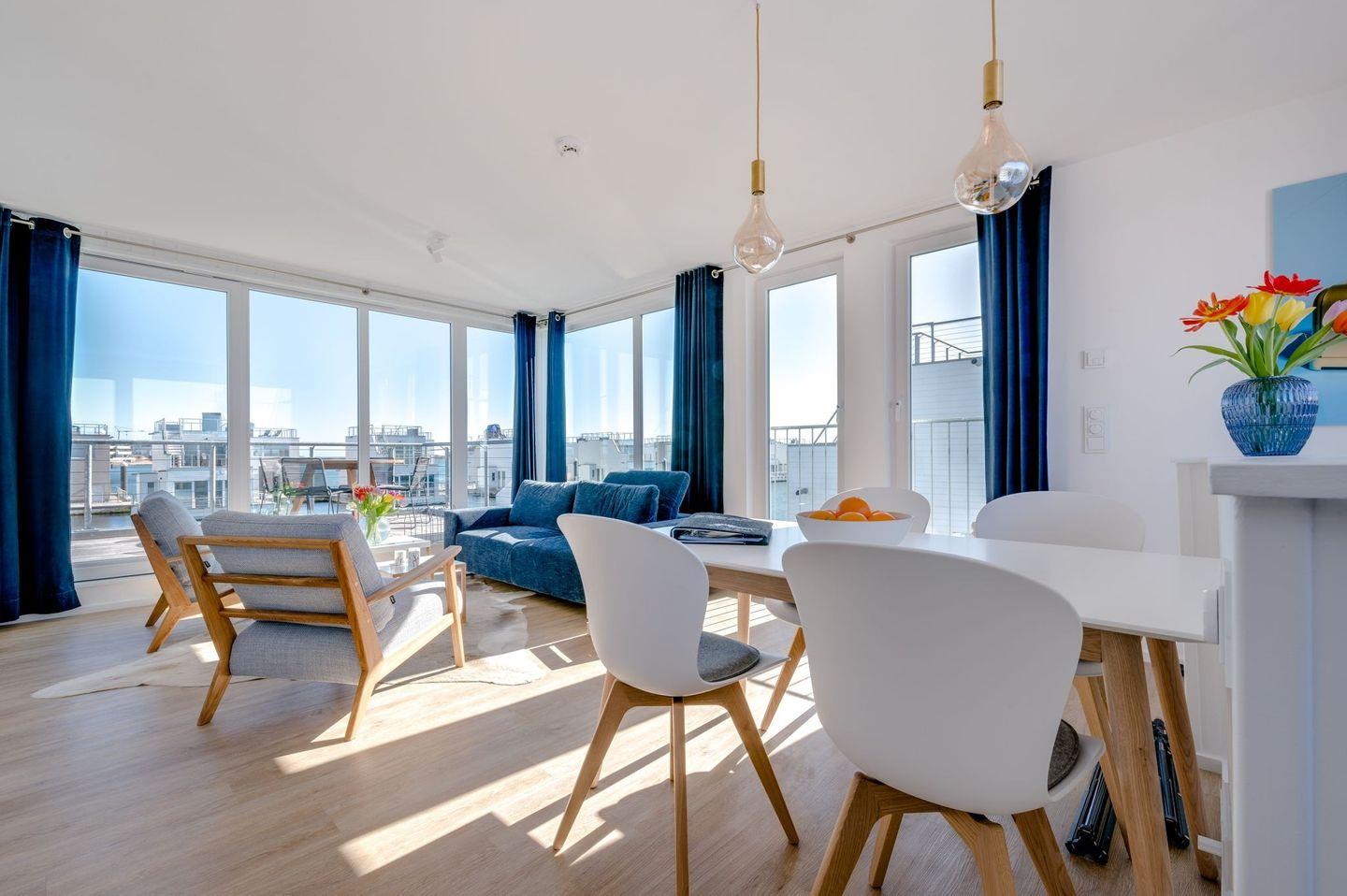 Die Kombination aus moderner Architektur, stilvoller, puristischer Innenausstattung und der besonderen Lage gestaltet den Aufenthalt zu einem unvergesslichen Erlebnis. Die exklusive Terrasse und das großzügige Sonnendeck laden zur Entspannung ein und bieten einen beeindruckenden Blick auf die Ostsee und die Schlei.