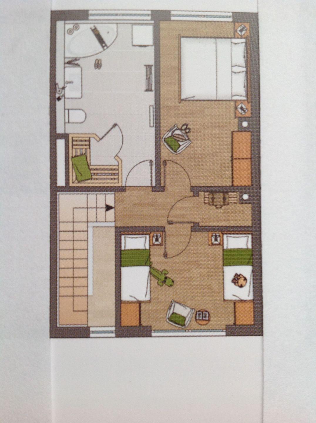 Vom Wohnzimmer führt eine bequeme Treppe führt nach oben zum Dachgeschoss.