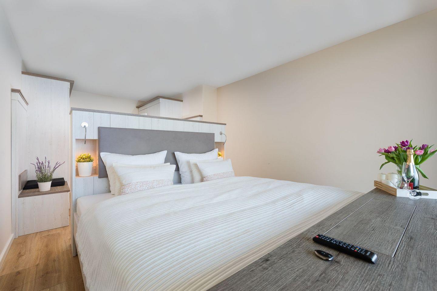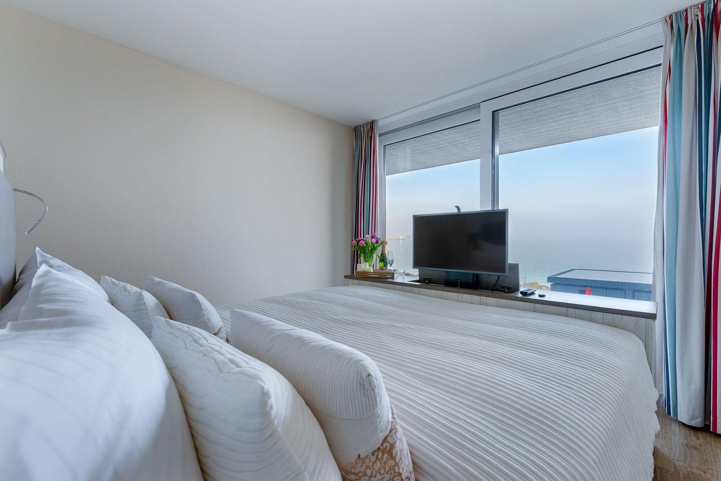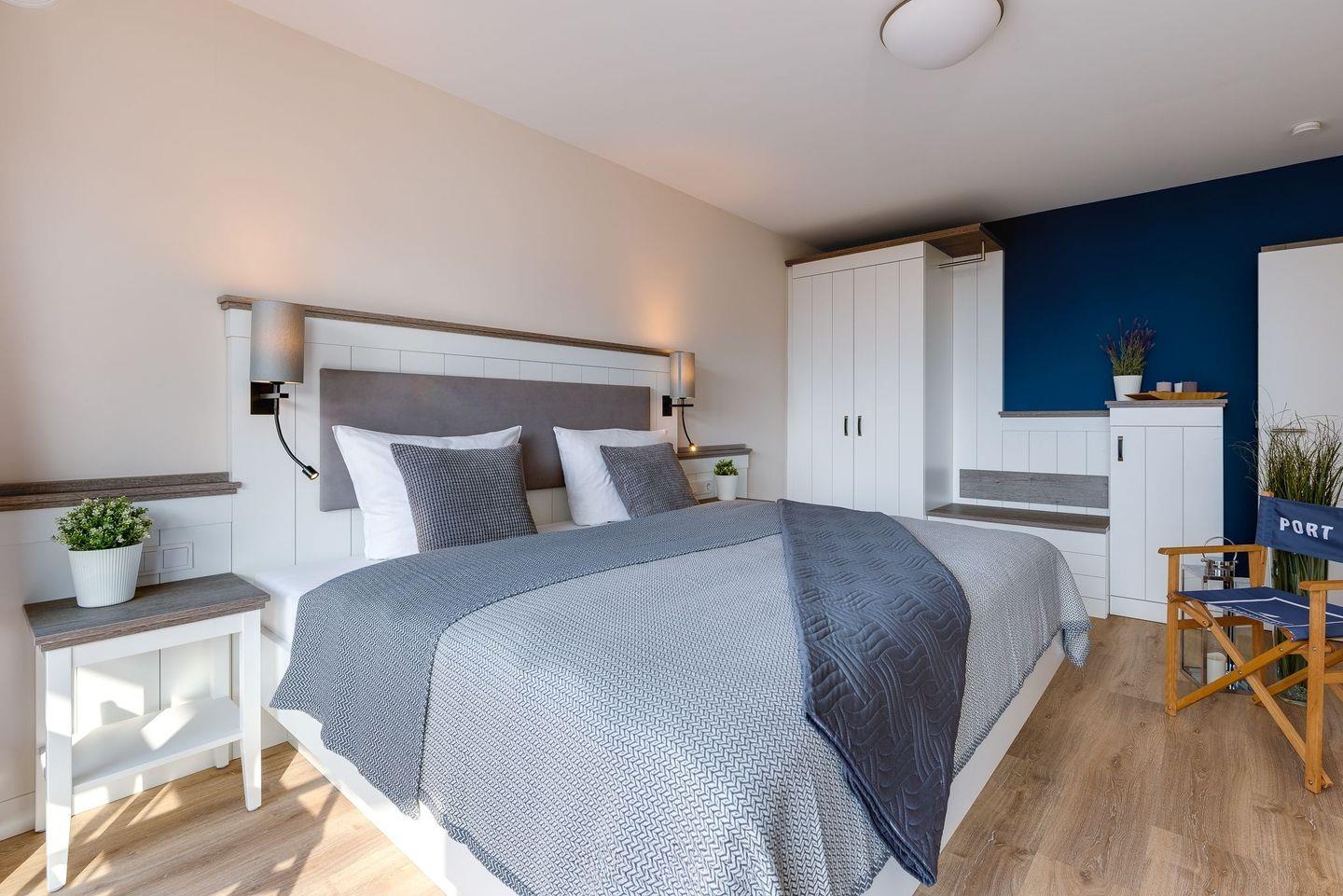 Verbringen Sie Ihre Ferien in der schicken Wohnung "Port Side" im Ostseeresort Olpenitz. Diese Unterkunft verbindet eleganten Komfort mit einer großartigen Lage „Auf der Ostsee“ und direktem Blick auf die weite Ostsee. Beginnen Sie den Tag mit Meerblick vom Hauptschlafzimmer aus. Den Abend lassen Sie in der gemütlichen Leseecke des zweiten Schlafzimmers ausklingen. Beide Zimmer bieten ein komfortables Rahmenbett mit orthopädischer 7-Zonen-Matratze für einen angenehmen Schlaf.