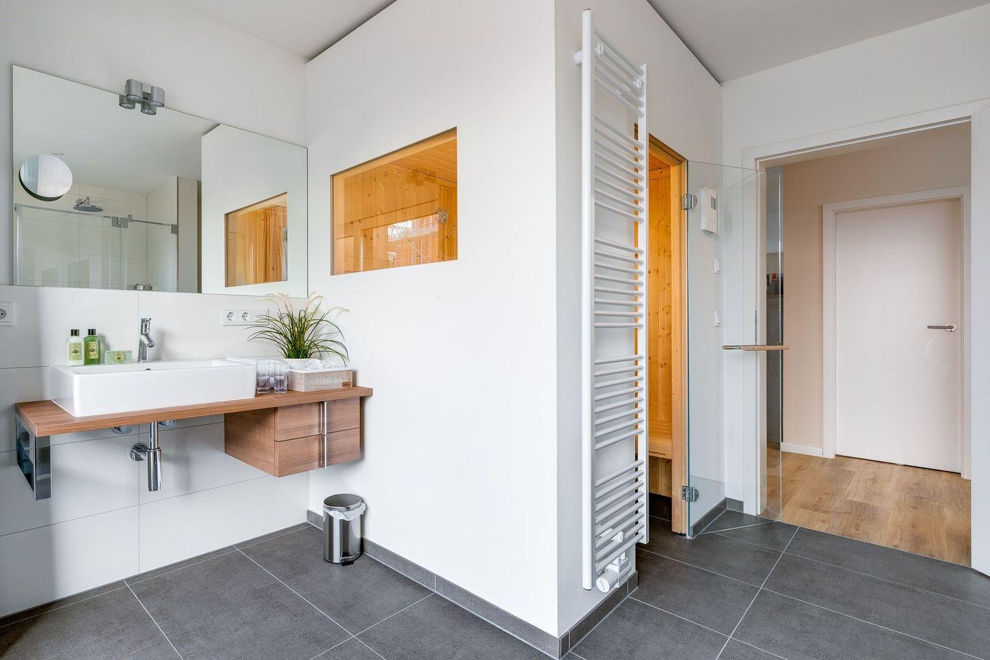 Genießen Sie Luxus mit Sauna und freiem Ostseeblick in der Ferienwohnung Port Side im Ostseeresort Olpenitz.