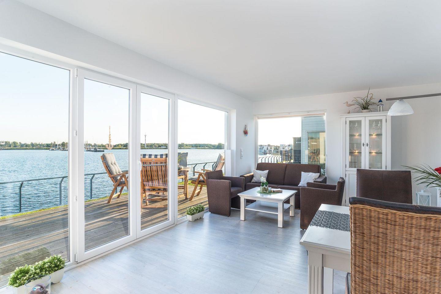 Moderne Ferienwohnung Hafenblick in Olpenitz mit Sauna, Whirlwanne und herrlichem Wasserblick.