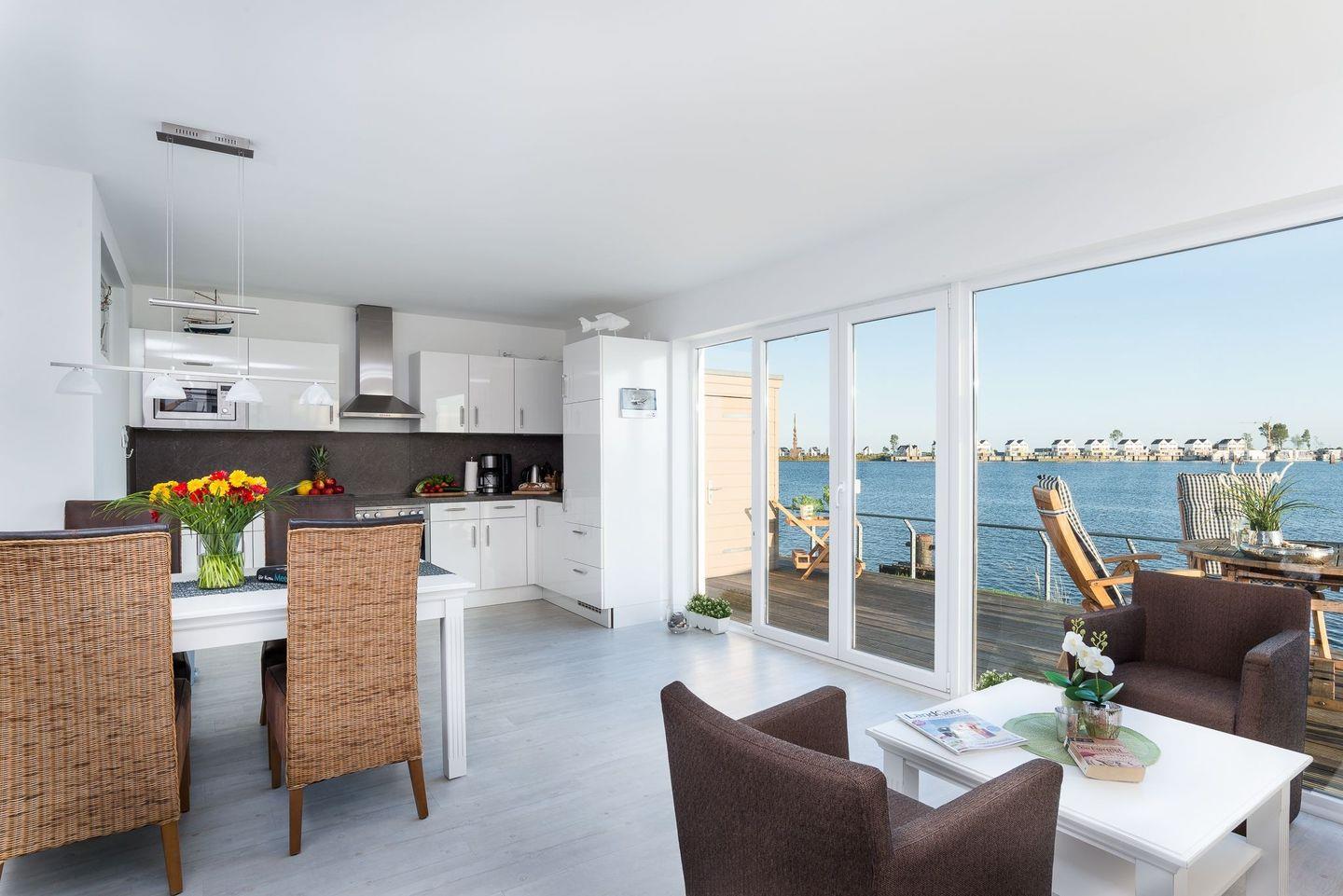 OFFENER WOHN-ESSBEREICH MIT WASSERBLICK