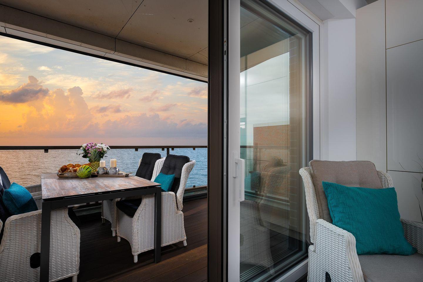 Die Wohnung verfügt über zwei Balkonterrassen, ausgestattet mit komfortablen Sitzmöbeln oder einem Strandkorb. Erleben Sie den atemberaubenden Ostseeblick von einem Balkon und genießen Sie die Abendsonne auf dem anderen.