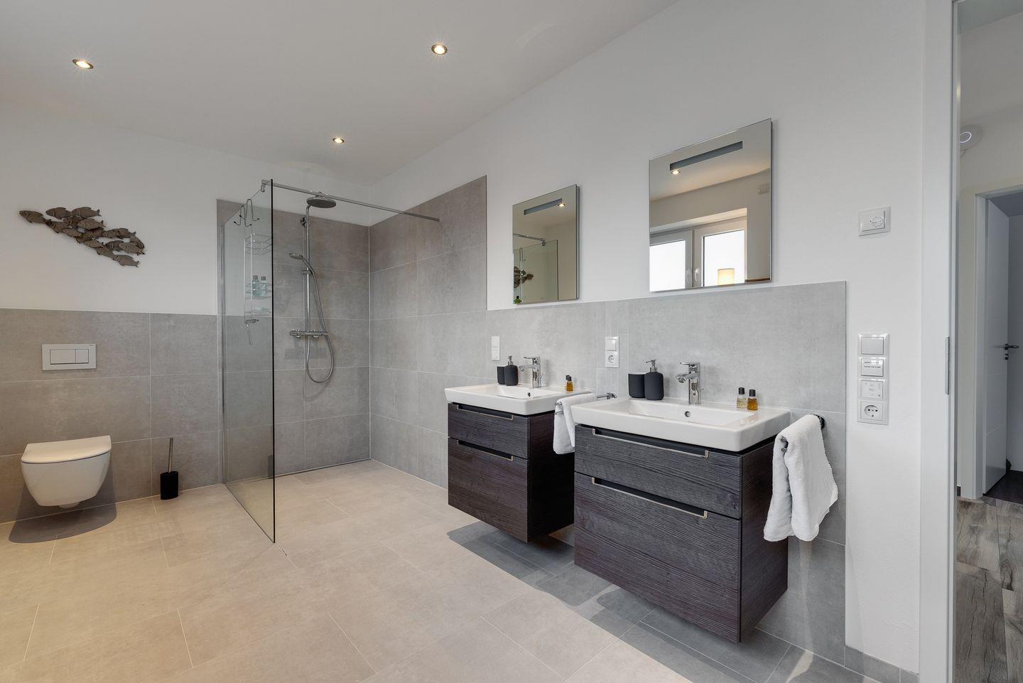 Drei stilvoll eingerichtete Schlafzimmer warten auf Sie: Zwei mit luxuriösen Boxspringbetten ausgestattet, während das dritte Schlafzimmer – ideal als Kinderzimmer – mit zwei Einzelbetten gemütliche Nächte verspricht. Genießen Sie die Annehmlichkeiten von zwei modernen Badezimmern, einer Sauna mit Farbwechseloption für jede Stimmung und einer Badewanne, die Ihnen einen traumhaften Blick auf die Ostsee ermöglicht.