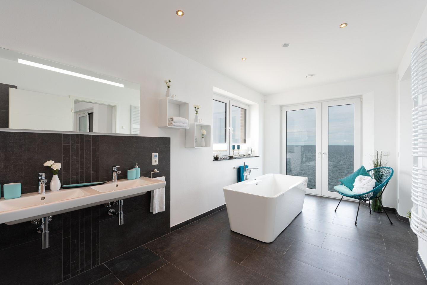 Die modern-maritime Einrichtung, ergänzt durch bodentiefe Fenster, helle Räume und einen Parkettfußboden mit Fußbodenheizung, schafft eine Atmosphäre der Gemütlichkeit und Eleganz. Der offene Küchen- und Essbereich lädt dazu ein, beim Kochen die freie Sicht auf die Ostsee zu genießen.