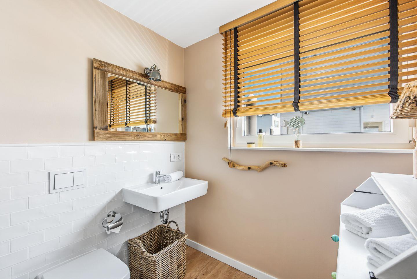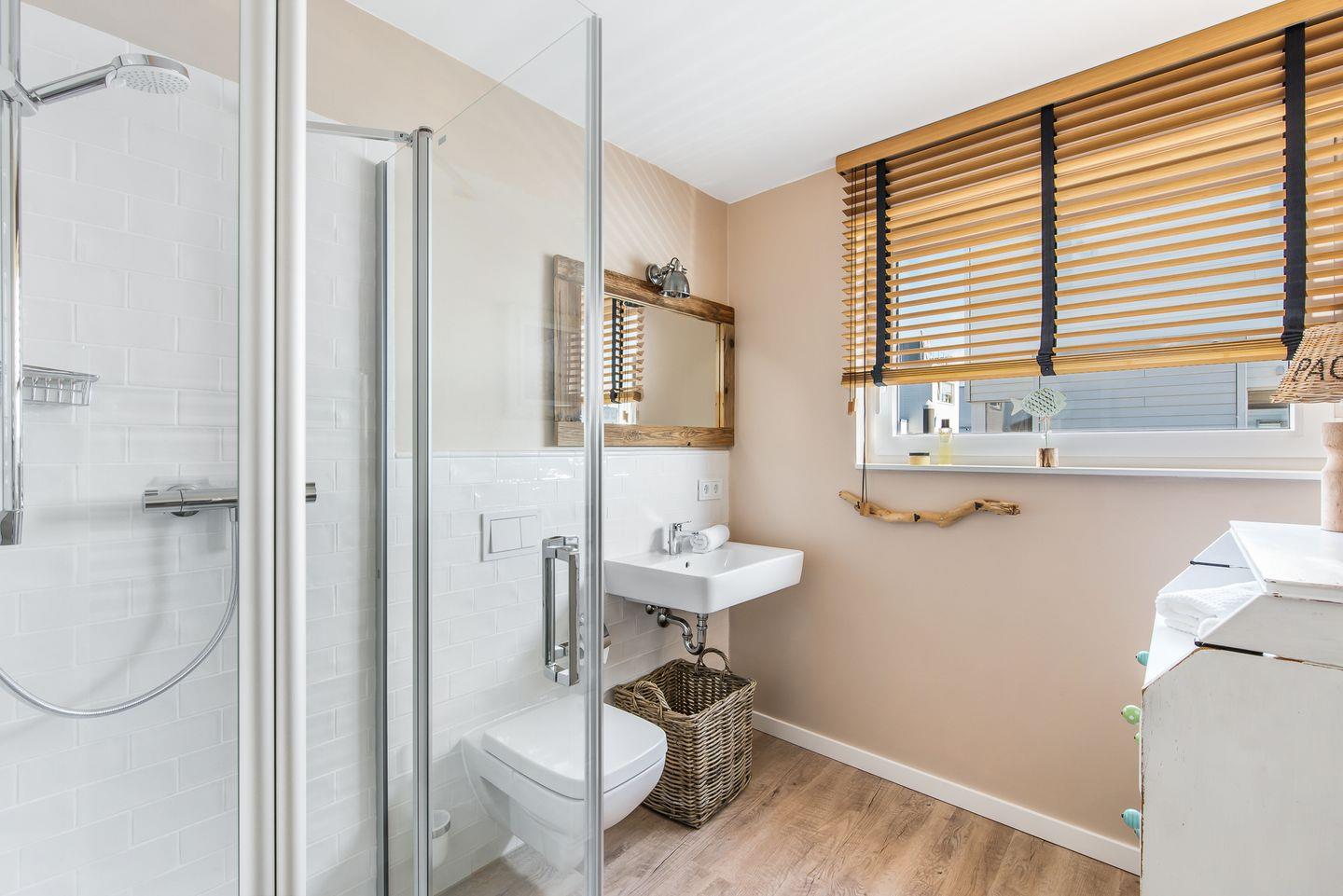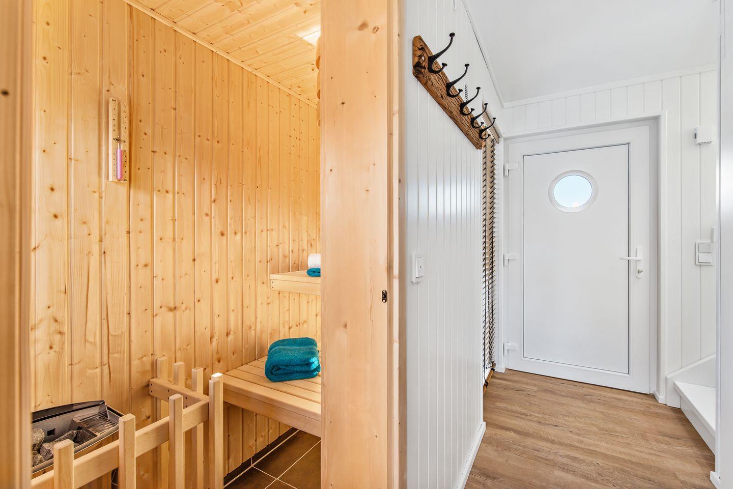 Die Sauna mit direktem Wasserblick lässt das Wasserhaus "Treibholz" auch an kälteren Tagen zu einer Wohlfühloase werden. Von der Sauna im Erdgeschoss direkt in das kühle Nass der Ostsee steigen. Das ist Luxus pur. Außerdem befindet sich das Badezimmer mit Dusche, WC und Waschbecken ebenfalls im Erdgeschoss, gegenüber der Sauna.