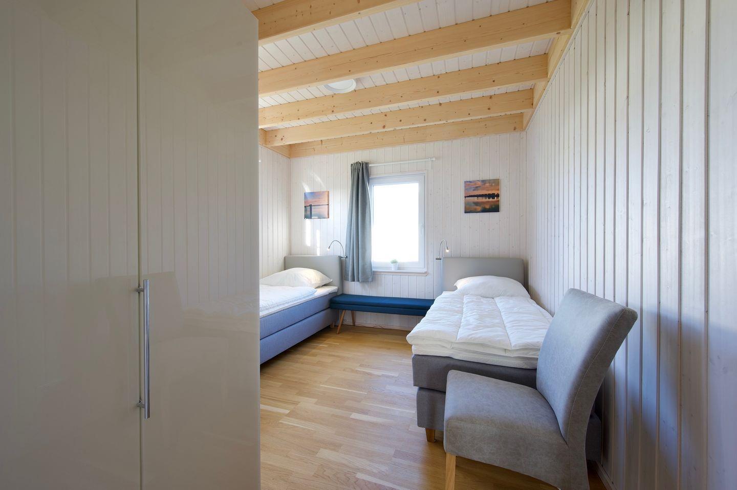 Im Erdgeschoss findest Du zwei Schlafzimmer, eines verfügt über ein Doppelbett (180 x 200 cm) und einen Smart-TV, das weitere über zwei Einzelbetten (je 90 x 200 cm). Außerdem findest Du im Erdgeschoss ein Badezimmer mit Badewanne und dem Highlight: einer Infrarot-Sauna. Hier kannst Du Dich nach langen Strandspaziergängen aufwärmen und entspannen.