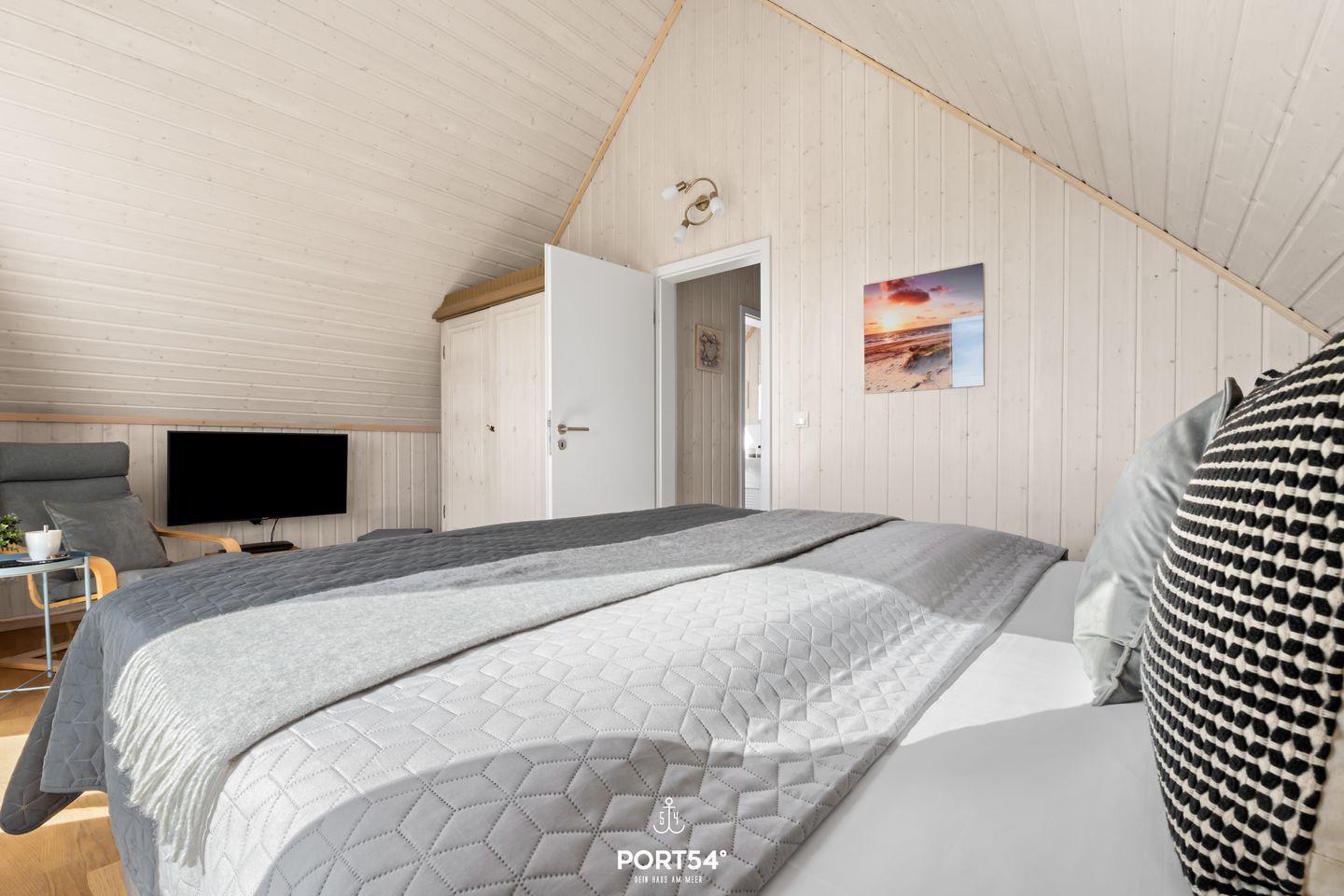 Für unsere kleinen Gäste stehen Dir ein Kinderhochstuhl, ein Reisebett, in jedem Bad ein Kindertritthocker und im Obergeschoss eine Treppensicherung zur Verfügung. Das eine Schlafzimmer bietet ein Doppelbett (180 x 200 cm) und das andere Schlafzimmer zwei Einzelbetten (je 90 x 200 cm). Beide Zimmer sind mit Kleiderschränken und Verdunkelungsmöglichkeiten ausgestattet. Das eine Schlafzimmer bietet zudem noch einen Flachbild-TV.