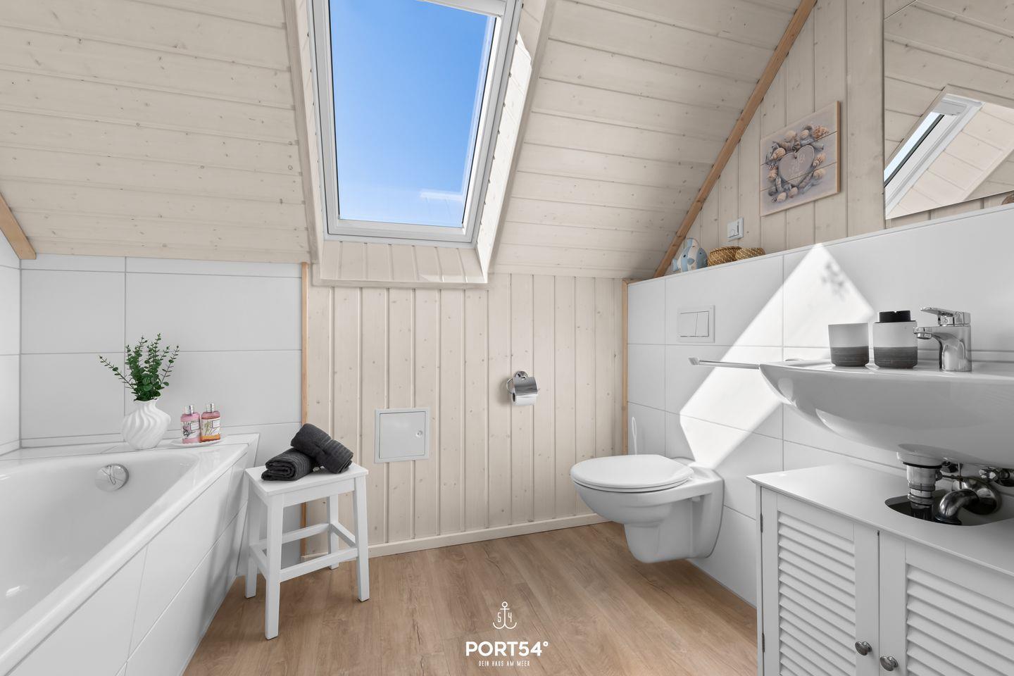 Ein Badezimmer befindet sich im Erdgeschoss und ist mit einer Dusche, einem Fön, einem Handtuchheizkörper und dem Highlight: einer Infrarot-Sauna ausgestattet. Hier kannst Du Dich an kalten Tagen aufwärmen und entspannen! Das andere Badezimmer befindet sich im Obergeschoss und bietet eine Duschwanne sowie ebenfalls einen Föhn.