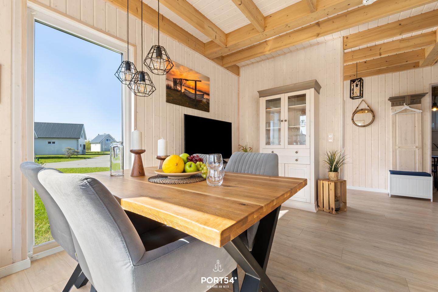 Willkommen im „Skippers Home“ in Olpenitz! Mache Urlaub an der Ostsee! Das Ferienhaus bietet auf 80 m² einen offenen Wohn- und Essbereich mit Küche, zwei Schlafzimmer, zwei Badezimmer und eine Terrasse.