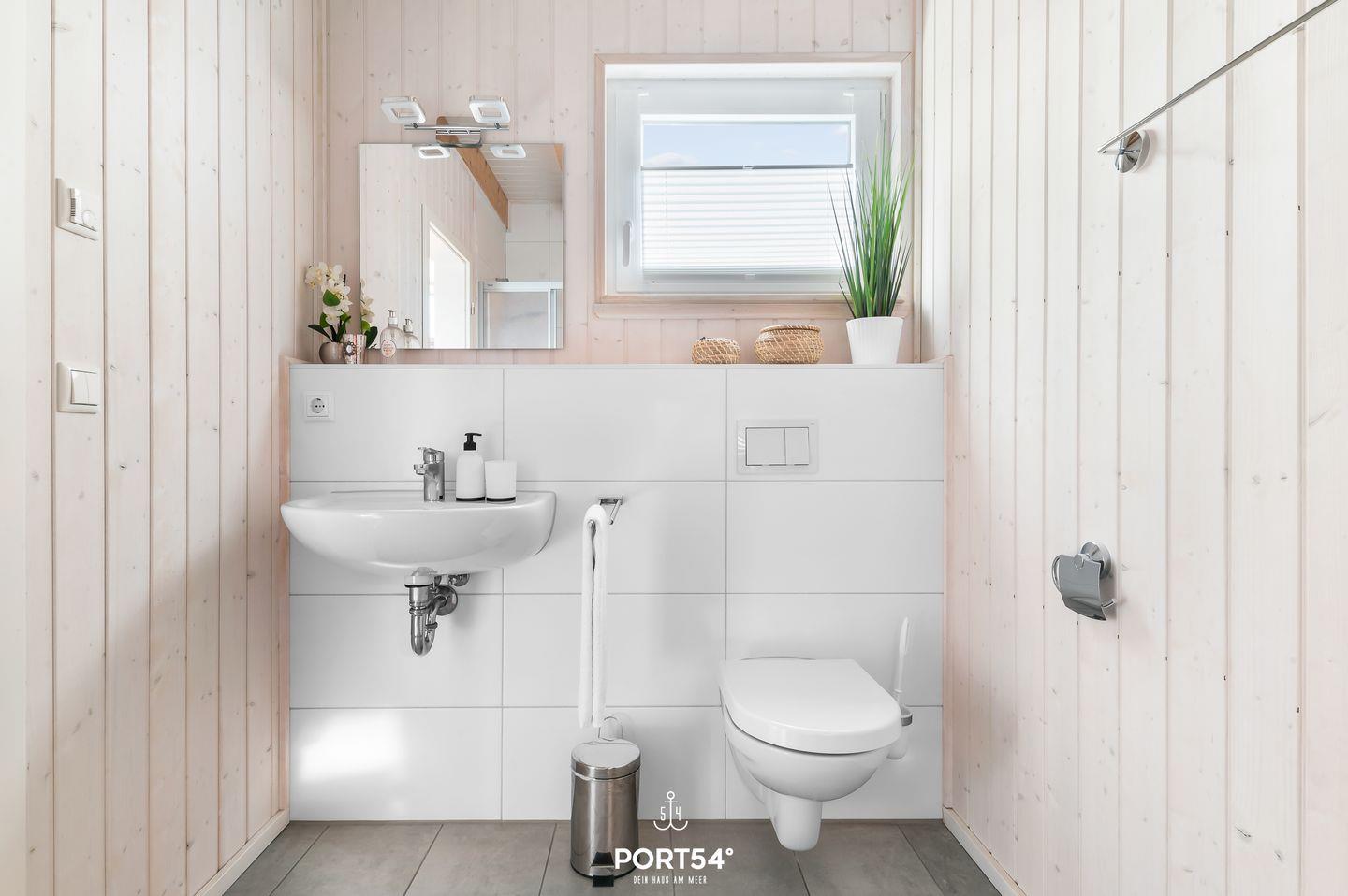 Das Badezimmer im Erdgeschoss ist ein echtes Highlight – mit einer Dusche, einem Föhn, einem Handtuchheizkörper und einer Infrarot-Sauna, die an kühlen Tagen für absolute Entspannung sorgt. Das zweite Bad im Obergeschoss verfügt über eine Duschwanne, einen Handtuchheizkörper und ein WC.