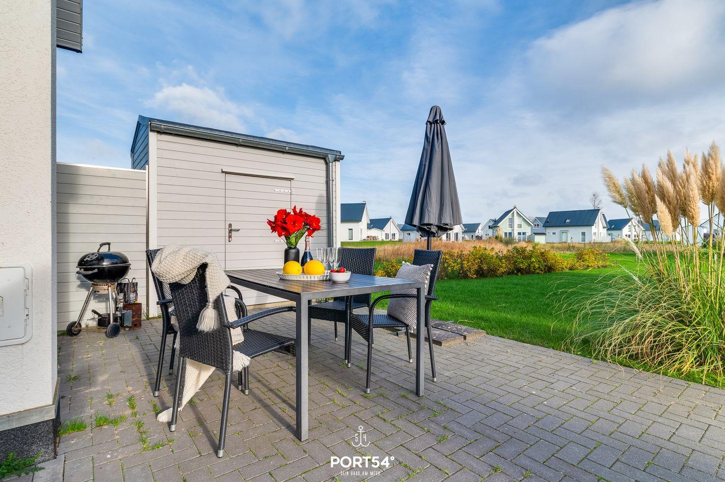 Draußen auf der Terrasse erwarten Dich bequeme Gartenmöbel und ein Holzkohlegrill – perfekt für entspannte Grillabende. Für Deinen PKW steht Dir ein Stellplatz zur Verfügung.