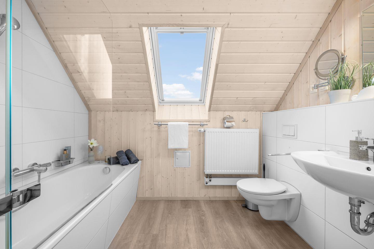 In den Bädern findest Du eine Dusche, eine Badewanne und einen Föhn vor. Das Duschbad bietet Dir das Highlight des Hauses: eine Infrarot-Sauna.