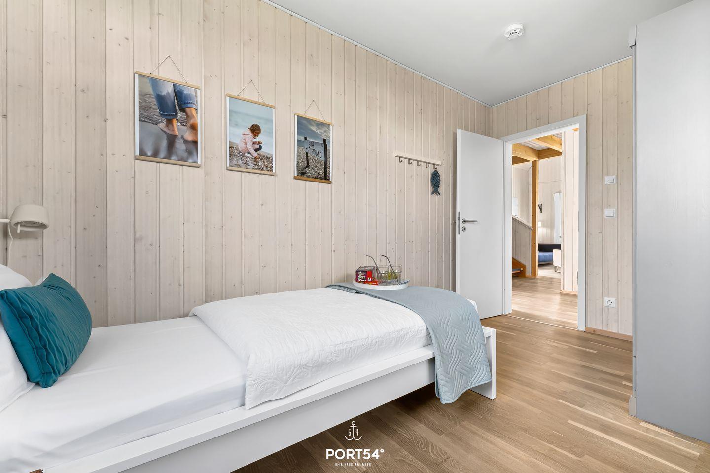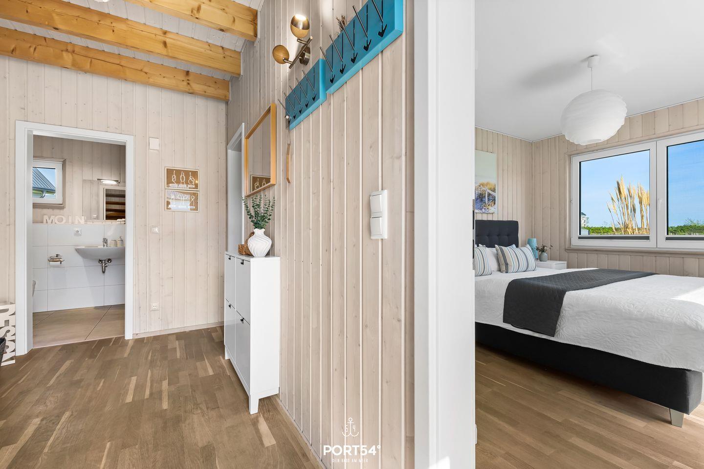 Willkommen in Ihrem Feriendomizil "Hygge Hus" in Olpenitz. Das freistehende, 98m² große Haus verfügt über einen offenen Wohn- und Essbereich, eine Küche, drei Schlafzimmer und zwei Bäder. Das Haus besticht durch seine Lage im Grünen und der unmittelbaren Nähe zur Ostsee. Im Erdgeschoss des Hauses liegen zwei der insgesamt drei Schlafzimmer sowie der große, loftartig angelegte Wohn- und Essbereich. Die hohen Decken und die großen Panoramafenster sorgen für besonders viel Lichteinfall und ein herrlich großzügiges Wohngefühl. Nach langen Strandspaziergängen können Sie auf dem gemütlichen Sofa vor dem Kamin entspannen, ein gutes Buch lesen oder Ihre Lieblingsserie auf dem Flachbild-TV schauen. Das Sofa verfügt über eine Schlaffunktion (155x200cm) und bietet Platz für zwei Kinder. Die voll ausgestattete, modern eingerichtete Küche bietet alles, was Sie für einen geselligen Kochabend mit der Familie benötigen. Das Bad verfügt über ein Fenster mit Sichtschutz, eine Handtuchheizung, Badewanne und als Highlight, über eine Infrarot-Sauna. Hier können Sie sich nach langen Strandspaziergängen aufwärmen und entspannen. Eines der beiden Schlafzimmer im Erdgeschoss verfügt über einen Schrank sowie ein gemütlichen Doppelbett (180x200cm). Das zweite ist ebenfalls mit einem Schrank und zwei Einzelbetten (je 90x200cm) ausgestattet. Ein weiteres Schlafzimmer befindet sich im Obergeschoss, mit einem Doppelbett (180x200cm), Schrank sowie einem Smart-TV. Alle Schlafzimmer sind mit Verdunkelungsmöglichkeiten und Insektenschutzgittern ausgestattet. Zusätzlich wurde eine Trittschalldämmung verbaut, so dass einem erholsamen Schlaf nichts mehr im Wege steht. Zudem befindet sich im Obergeschoss ein zweites Bad mit Fenster und Sichtschutz, Dusche und Föhn. An sonnigen Tagen können Sie es sich auf der möblierten, südwestlich ausgerichteten Terrasse gemütlich machen. Hier können Sie ihre Urlaubstage genießen und an lauen Sommerabenden mit der Familie die Tage ausklingen lassen. Einem Grillabend steht auch nichts im Wege. Für die Kleinen stehen ein Kinderhochstuhl und Babybett bereit. Für Ihre PKW's stehen vor dem Haus zwei Parkplätze zur Verfügung. Das Haus ist für 6 Erwachsene und 2 Kinder ausgestattet.